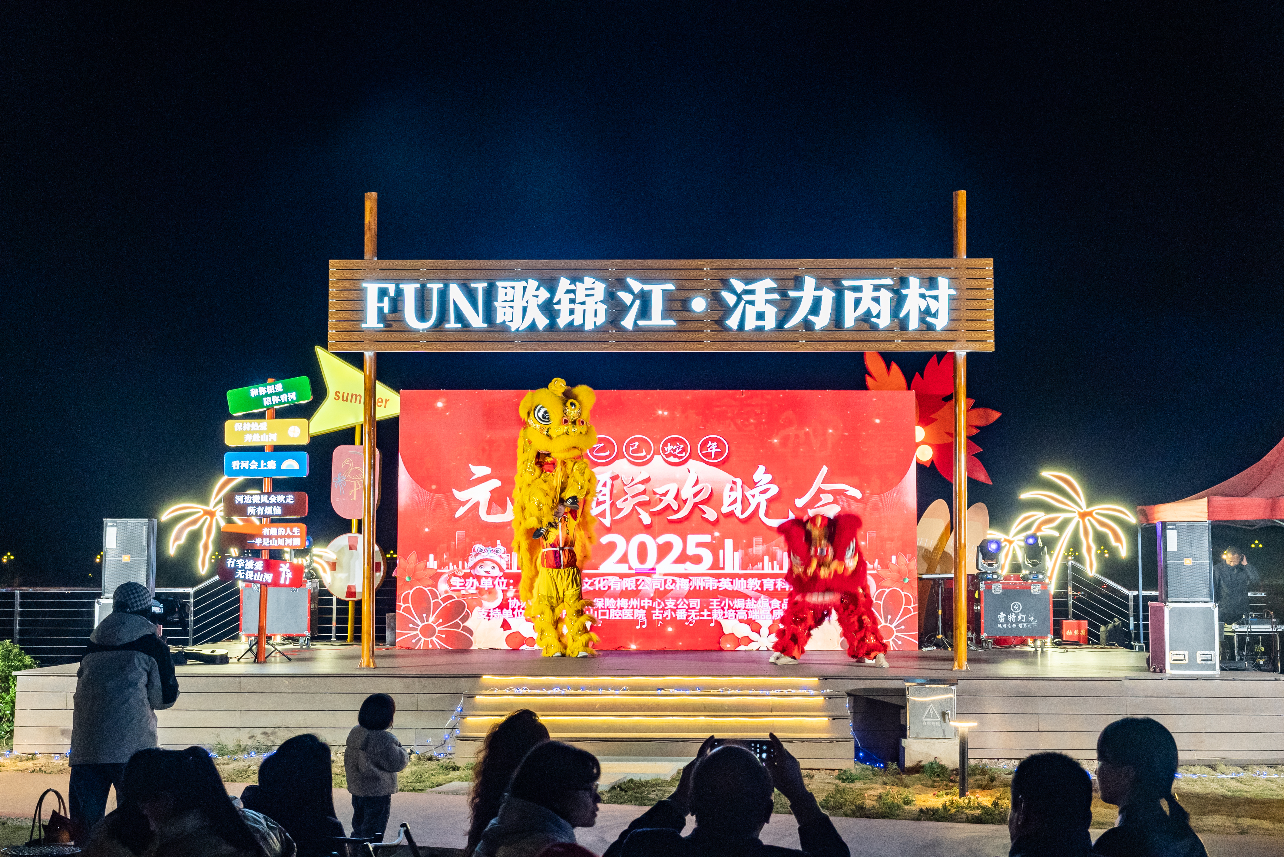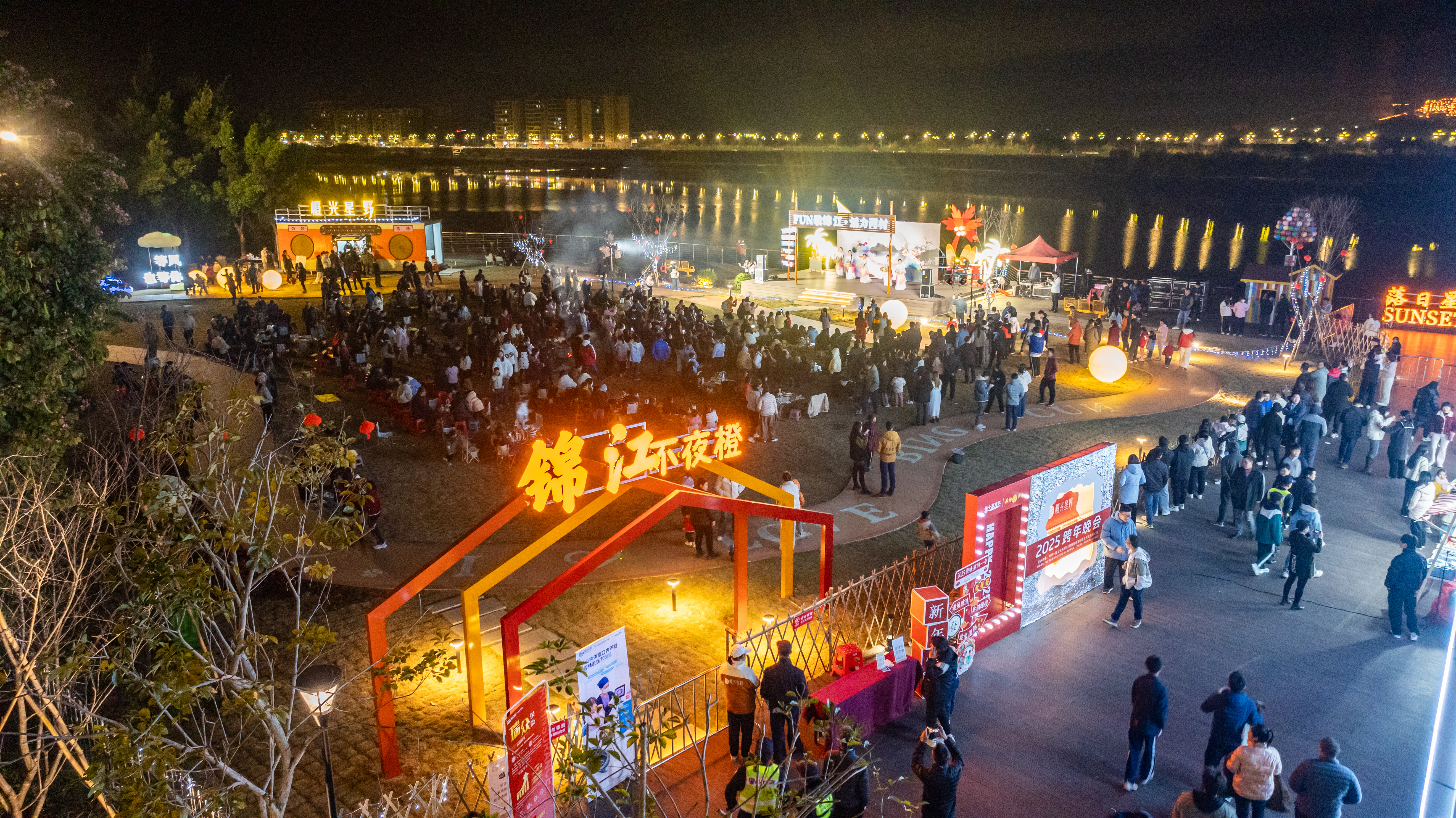 2024年12月31日晚,丙村镇在乡村大讲堂侧的锦江不夜橙举办“锦江河畔·活力之夜”跨年活动。此次活动有效提升乡村大讲堂露营地品牌形象与知名度,营造欢乐、浪漫、富有仪式感的跨年氛围,吸引了众多游客前来参与,共同迎接2025新年的到来。