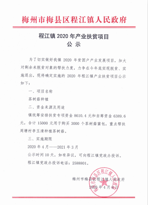 程江镇2020年产业扶贫项目公示
