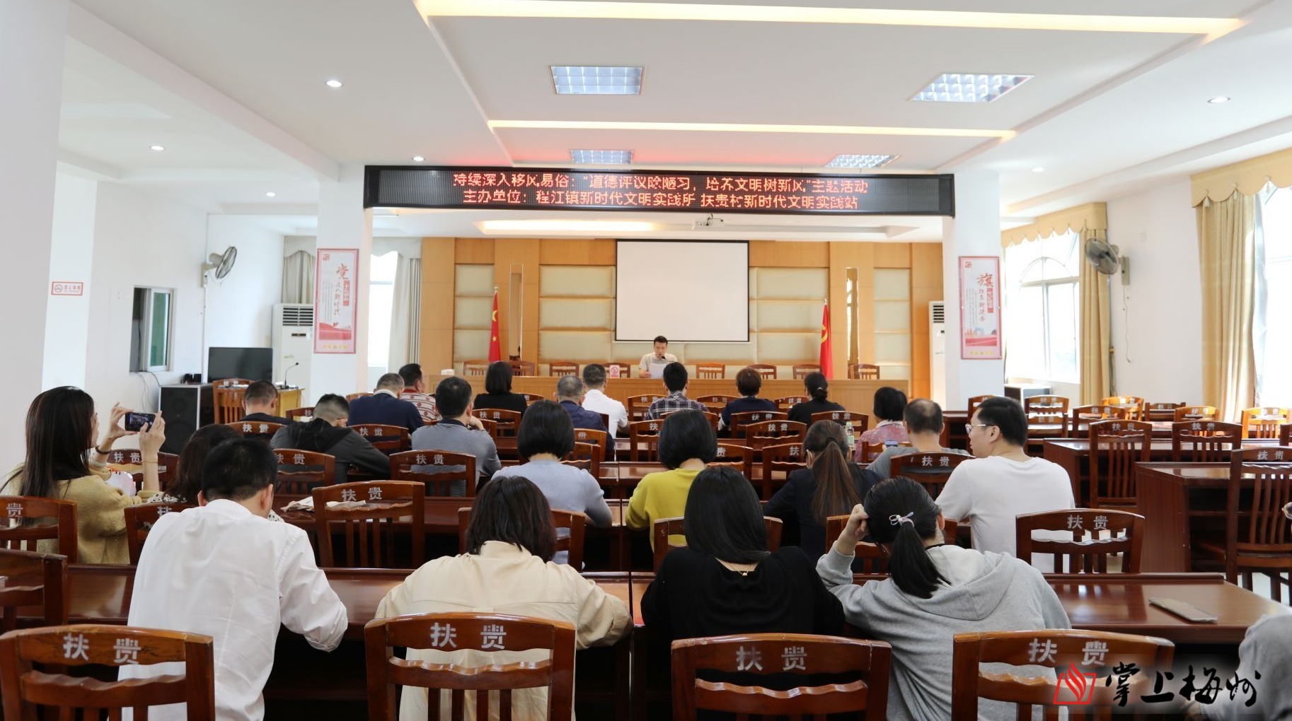 4月27日下午,一场主题为“道德评议除陋习培育文明树新风”的道德评议会在梅县区程江镇扶贵村新时代文明实践站举行。