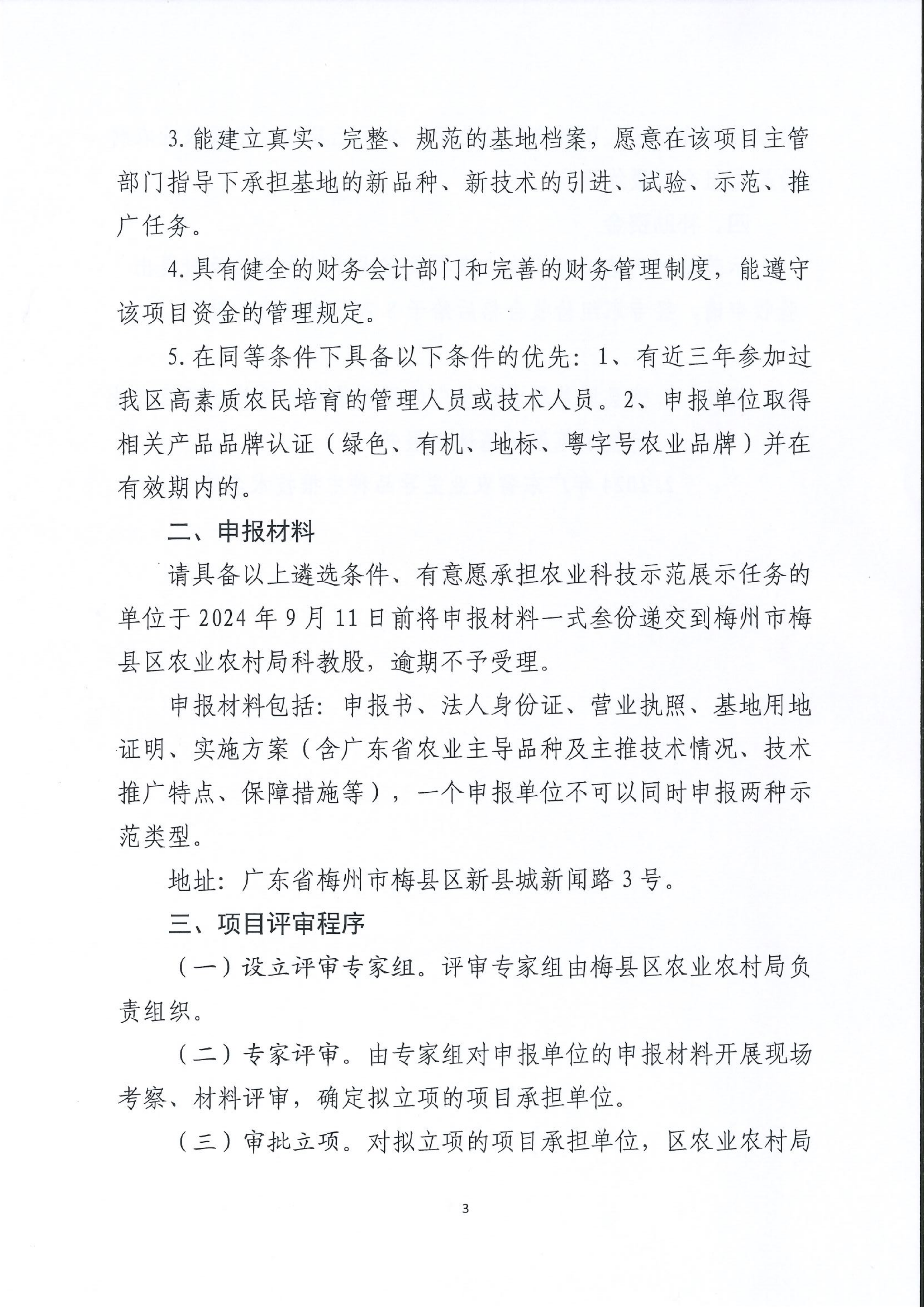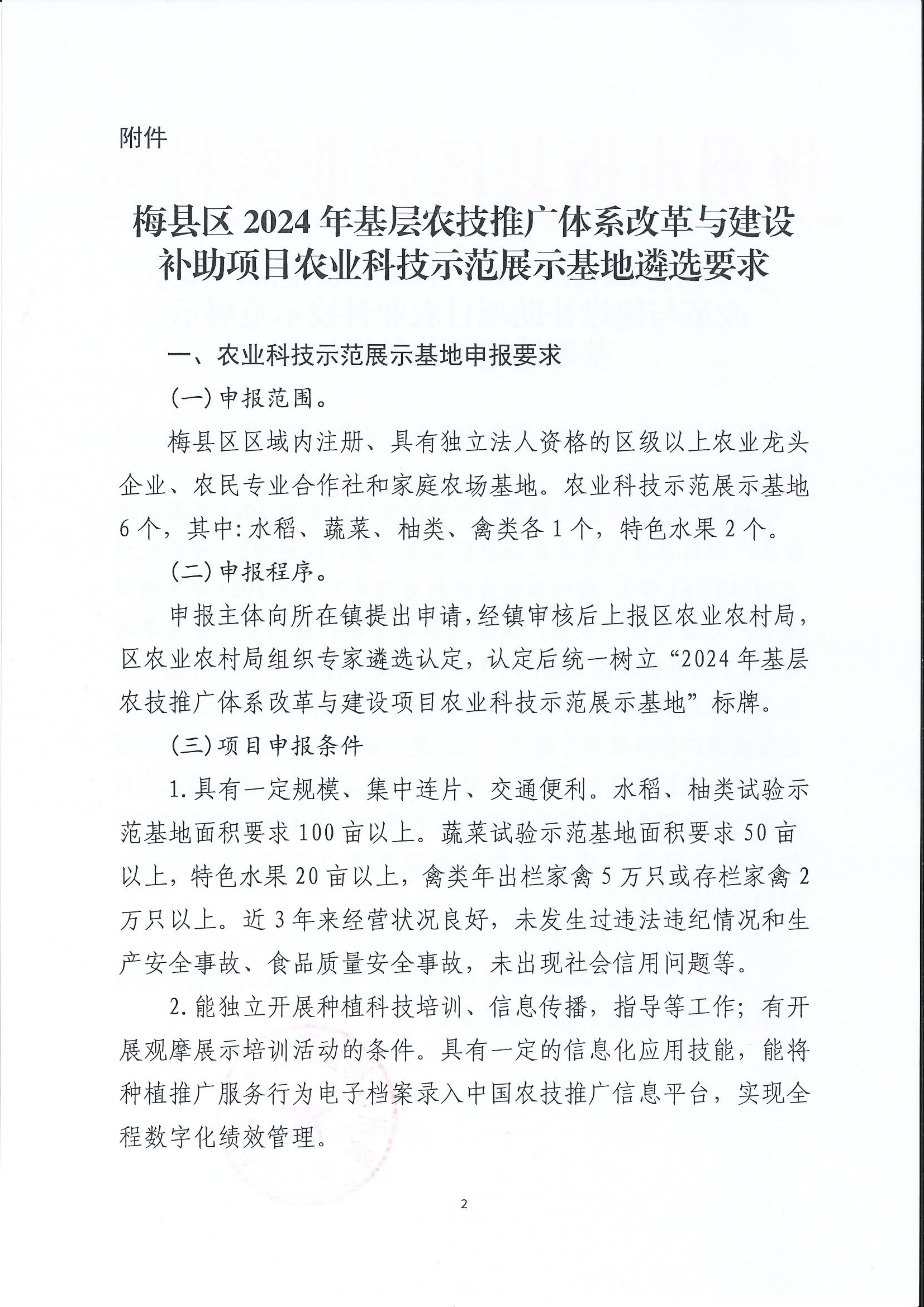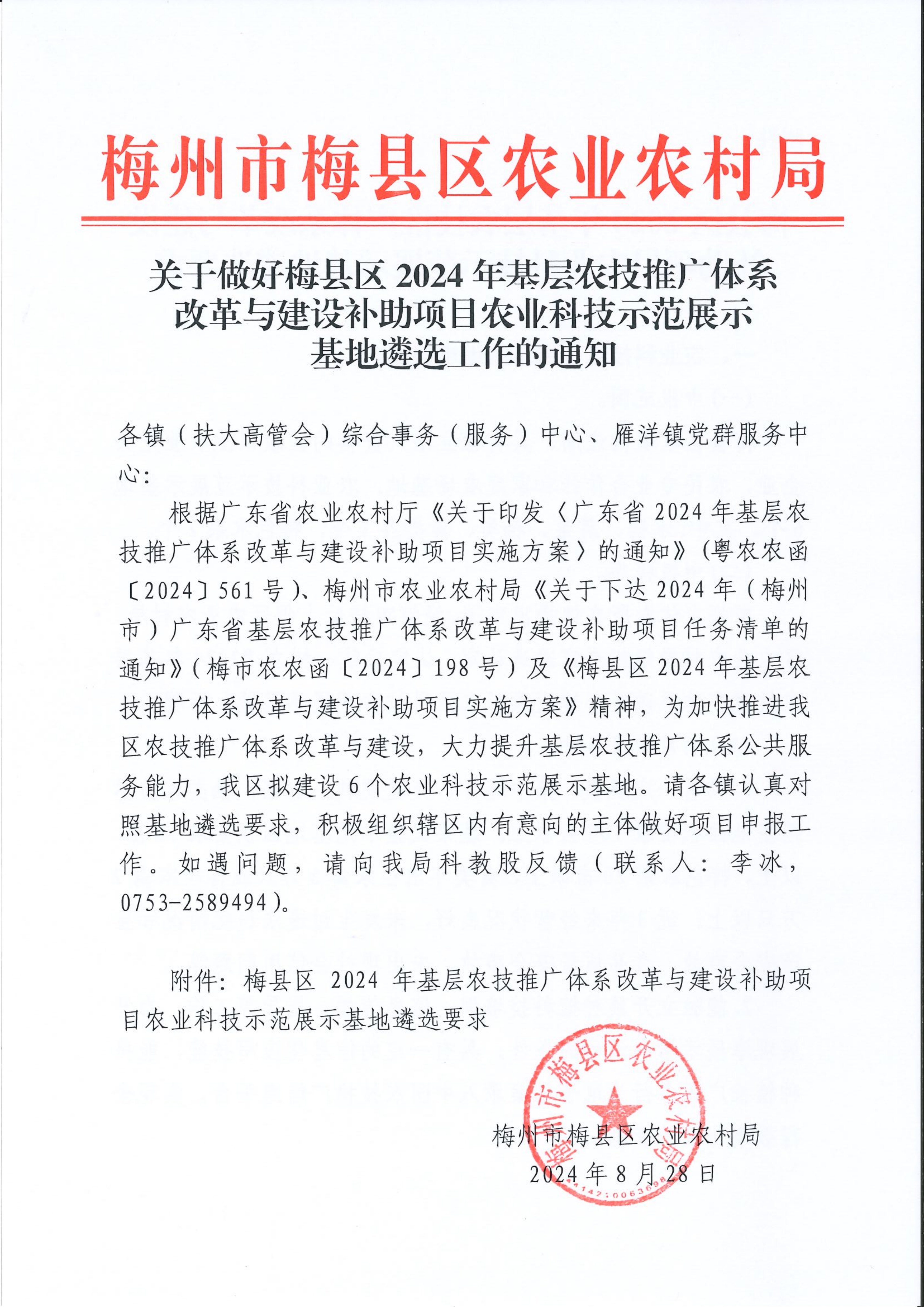 | 名称: | 关于做好梅县区2024年基层农技推广体系改革与建设补助项目农业科技示范展示基地遴选工作的通知 | ||