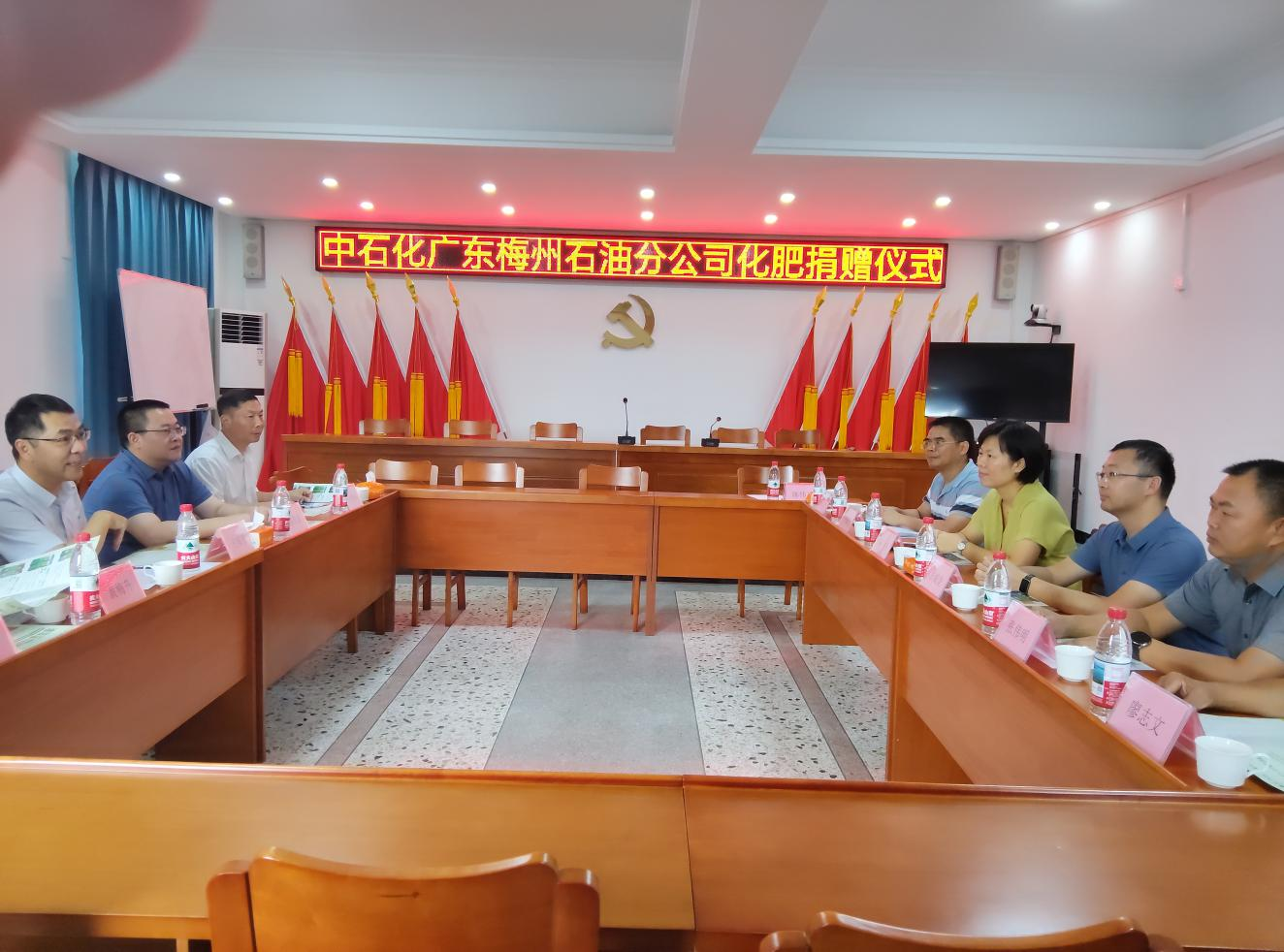 近日,梅县区水车镇驻镇帮镇扶村工作队发挥组团单位帮扶优势,联合中石化广东梅州石油分公司在水车镇开展“化肥助农耕、产业齐发展”捐赠活动,为水车镇种植大户送上一批中石化专供复合肥,以实际行动助力农耕生产。
