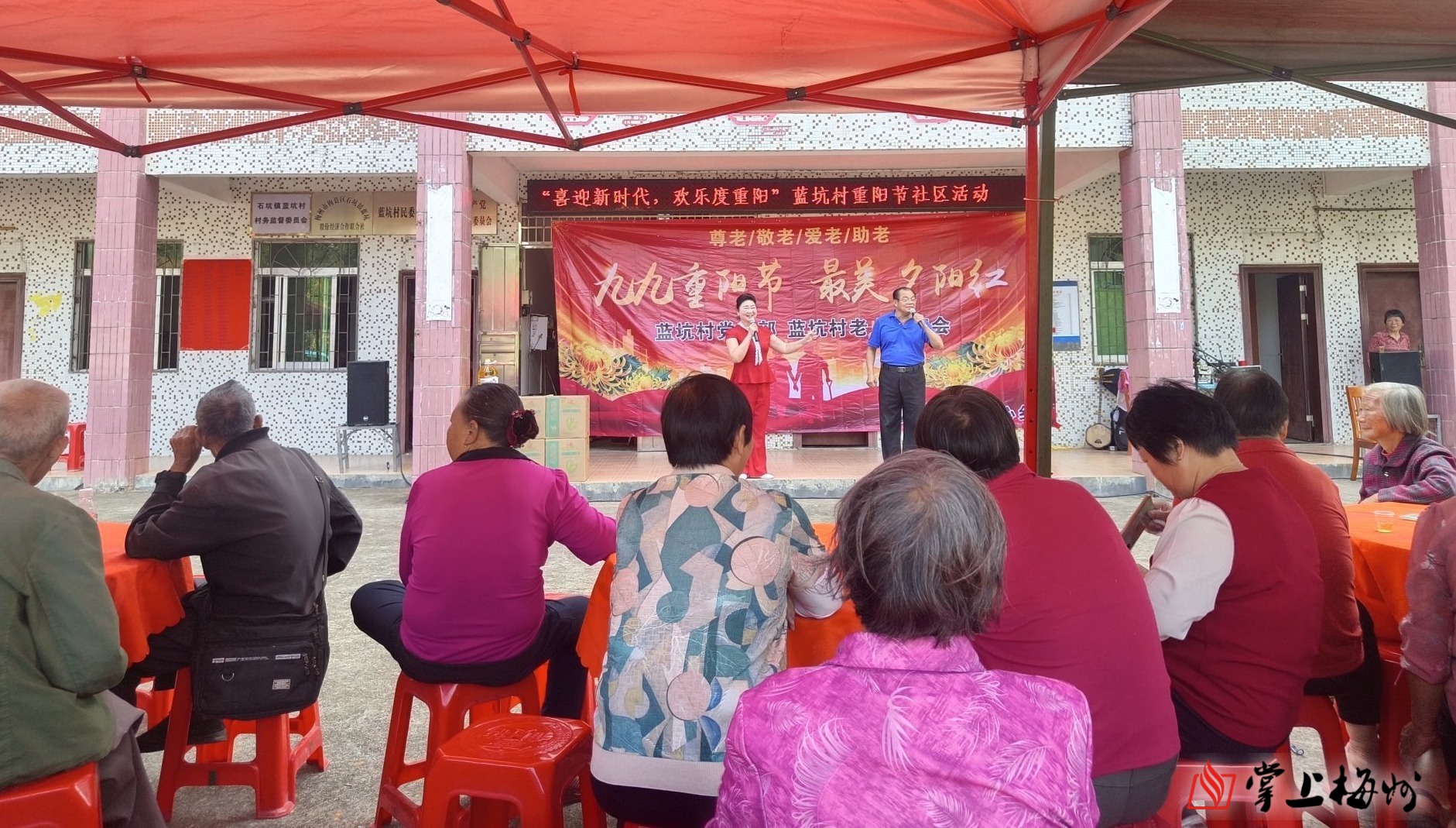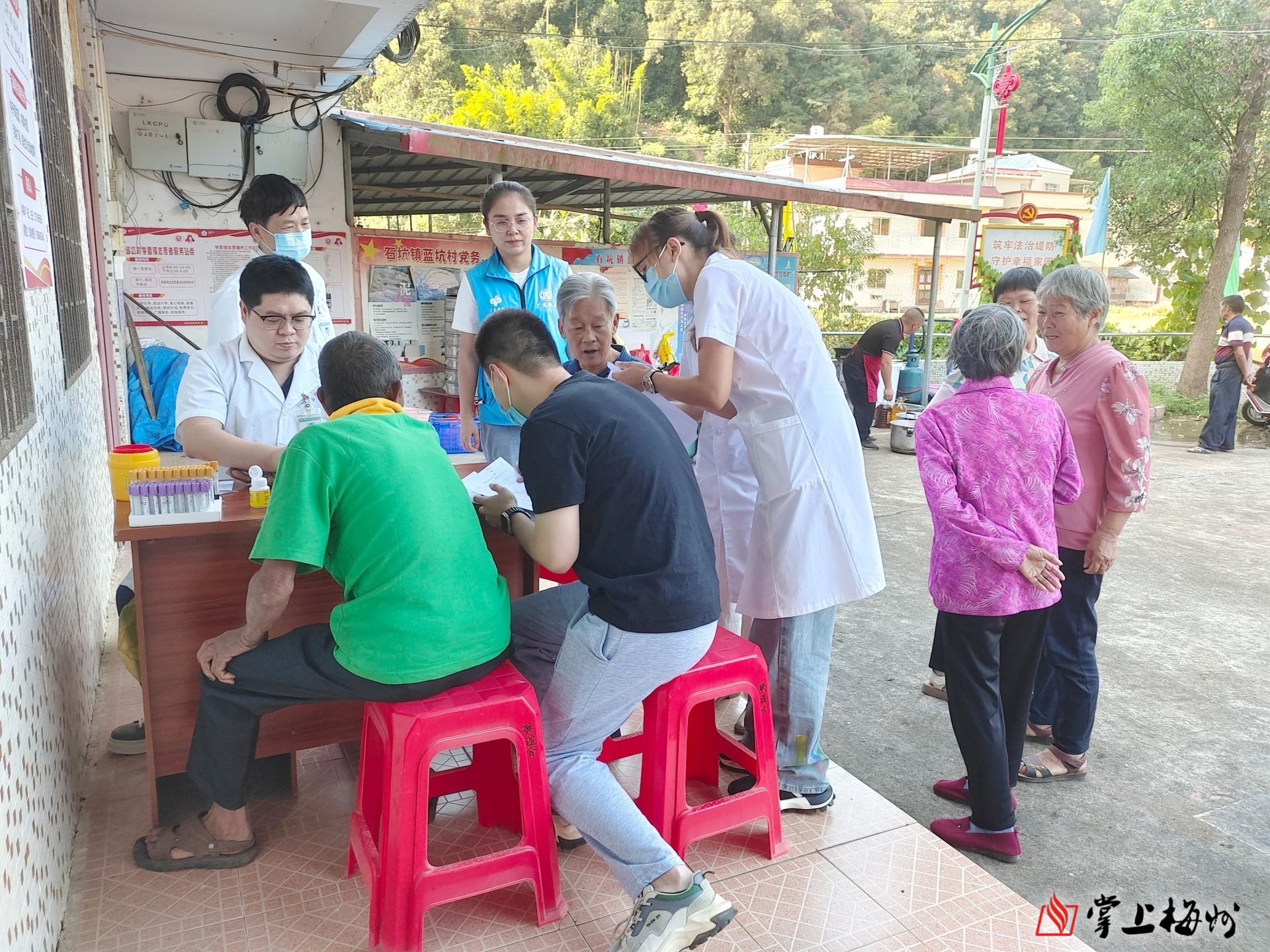 在两个活动现场,老人们欢坐一堂,热闹非凡。这边,客家山歌代表性人物、山歌大师大声古携搭档正在进行即兴文艺表演,为村民演唱一首首优美动听的山歌;那边,在设置的老年人健康体检区,石坑镇卫生院的医护人员正在为前来参加活动的老人提供量血压、测血糖等免费体检项目,为老人健康护航;同时,社工们还借此机会向老人们进行相关政策宣讲,帮助他们更好地了解和享受政府提供的各项福利和服务。