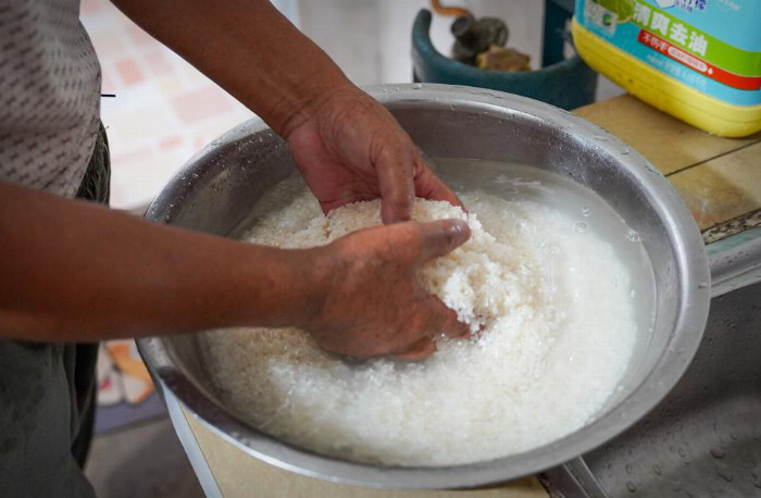 客家鱼焖饭的制作,始于对食材的极致追求。掌勺的阿叔向实践团介绍了鱼焖饭的选材,作为焖饭的基础,米的选择至关重要。他们坚持使用当季新收的优质稻米,这些稻米颗粒饱满,色泽晶莹,富含多种营养成分。