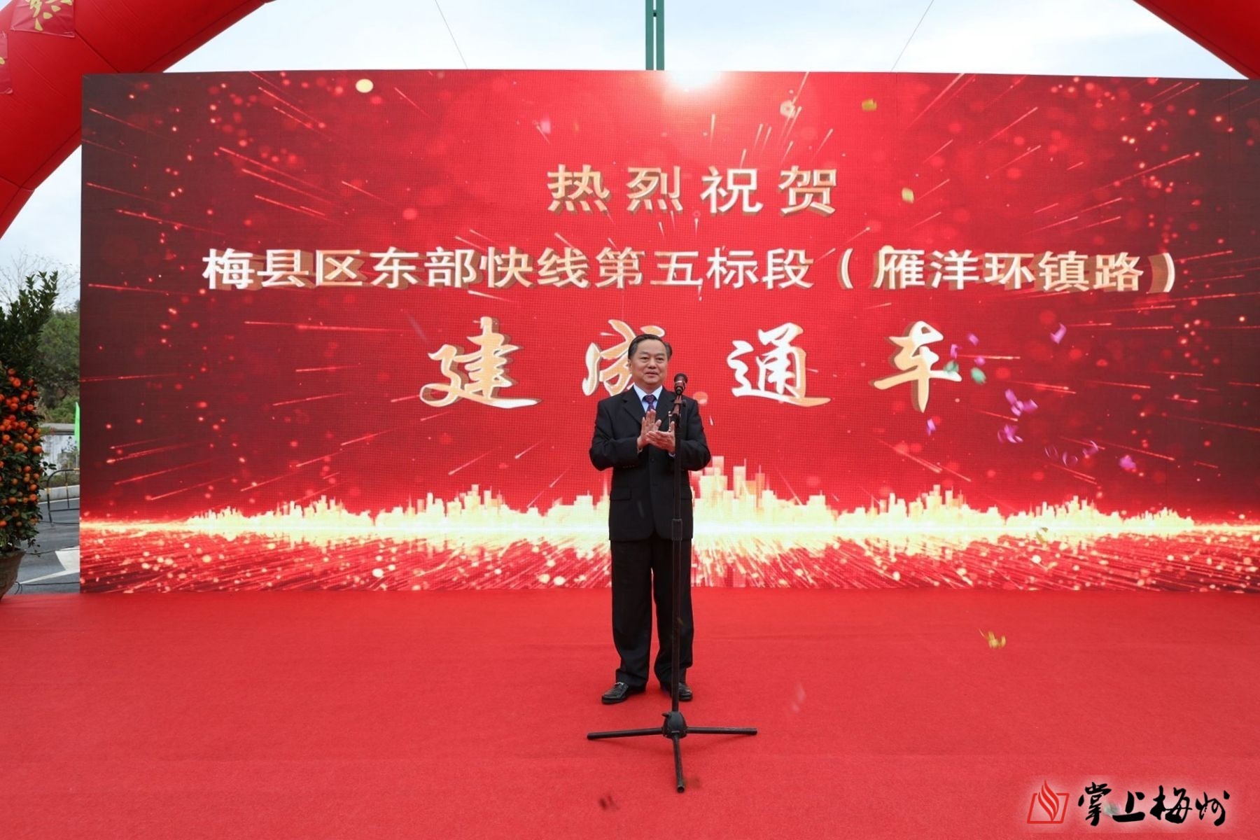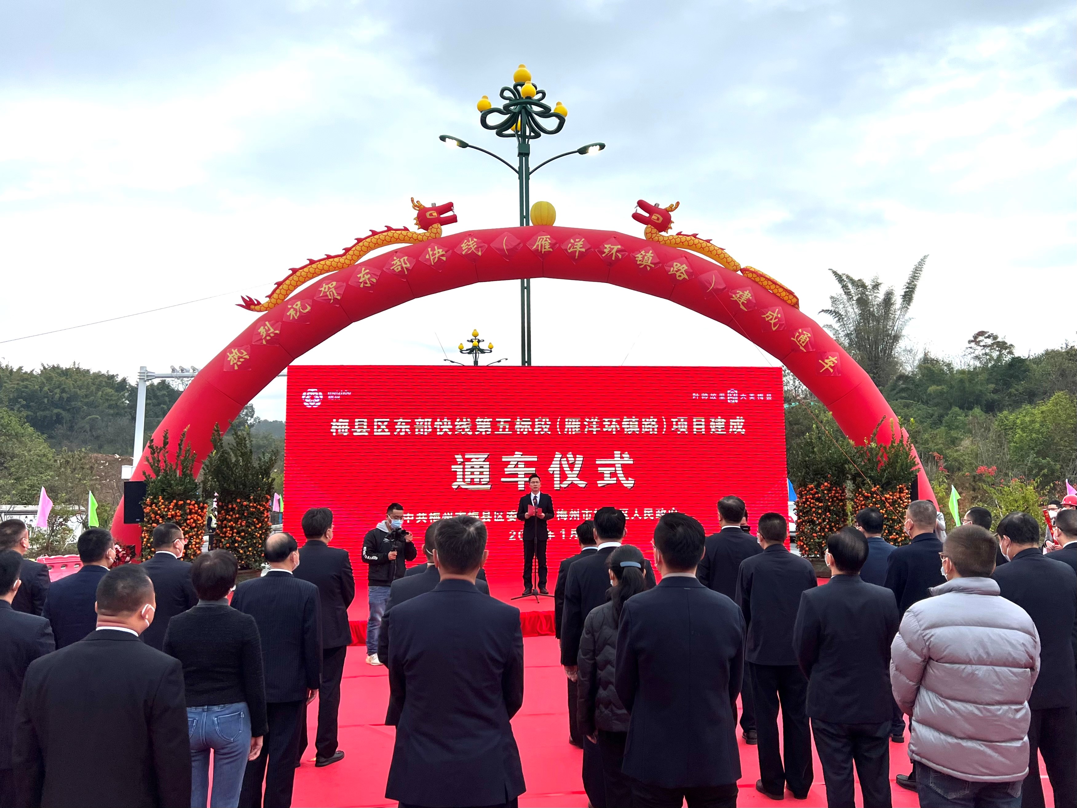 1月12日上午,梅县区举行东部快线第五标段(雁洋环镇路)建成通车仪式,梅县区委书记温助民,梅县区委副书记、区长王锋等领导参加。