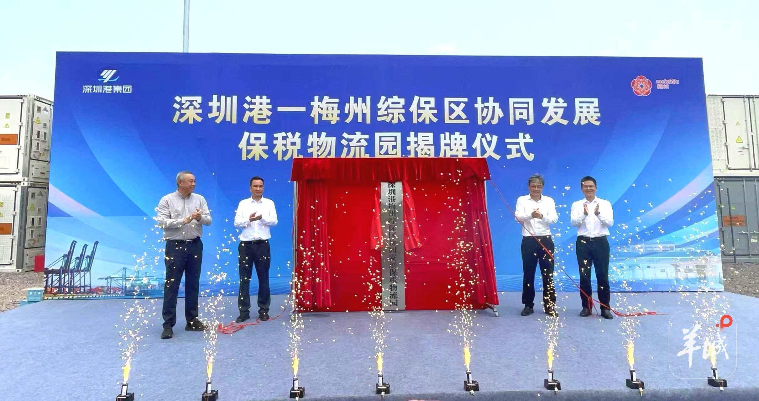 4月15日上午,深圳港—梅州综保区协同发展保税物流园揭牌仪式在梅州综保区举行。梅州市委常委、市政府党组副书记、副市长蒋鲲,深圳港集团副总裁薛陶涛,深圳港物流集团总经理宋关涛,梅县区区长、梅州综保区管委会党组书记、主任王锋,梅州海关关长陈静,以及深圳港集团、梅州市直和各县(市、区)相关单位负责人及外贸企业代表参加活动。