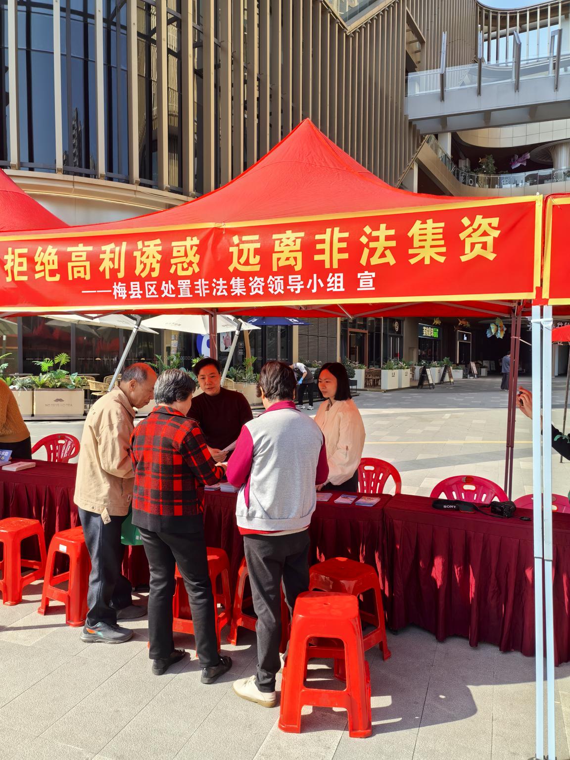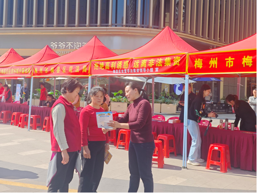 为切实提升社会公众对非法集资的防范意识和识别能力,增强全民诚信守法意识,3月15日,梅县区财政局在梅州天虹购物广场开展了以“拒绝高利诱惑 远离非法集资”为主题的防范非法集资暨诚信建设宣传活动。