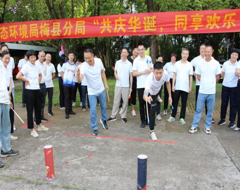 为庆祝中华人民共和国成立76周年,丰富干部职工精神文化生活,进一步增强队伍凝聚力和向心力,近日,梅州市生态环境局梅县分局工会精心组织了一场以“共庆华诞,同享欢乐”为主题的趣味运动会,全体干部职工踊跃参与。
