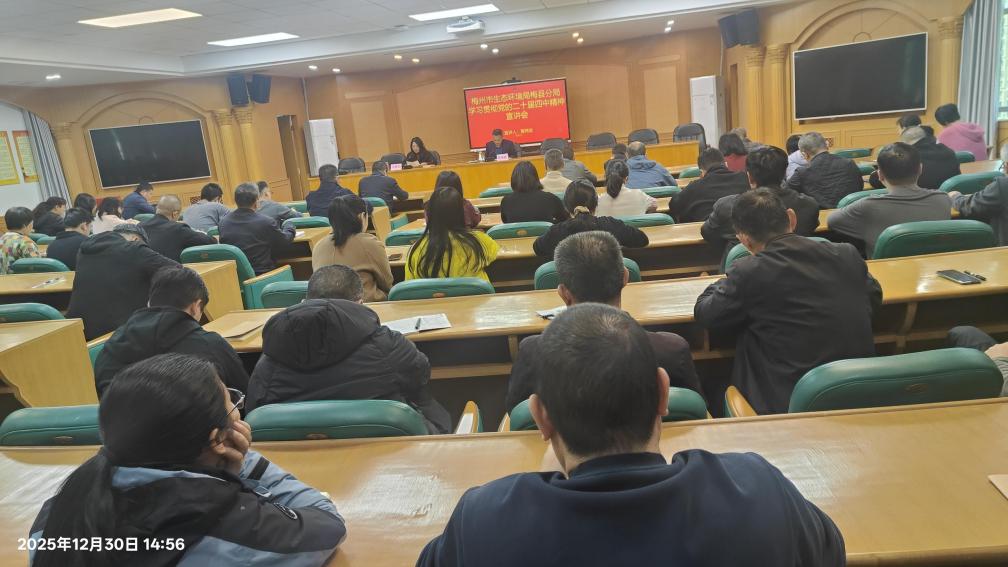 近日,梅州市生态环境局梅县分局组织召开学习贯彻党的二十届四中全会精神专题宣讲会。梅县区委宣讲团成员、分局党组书记黄伟政同志作专题宣讲报告,全体干部职工参加学习。