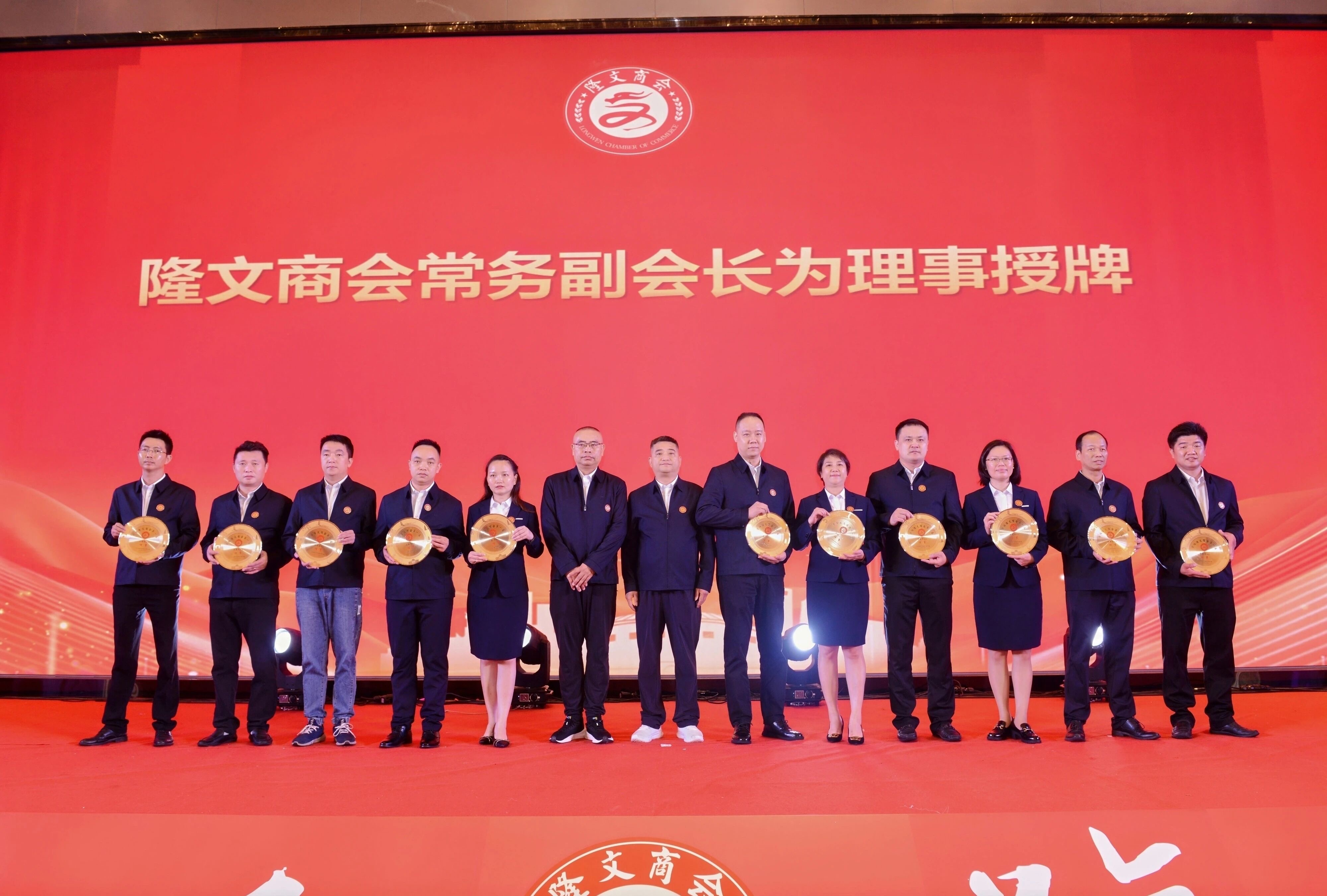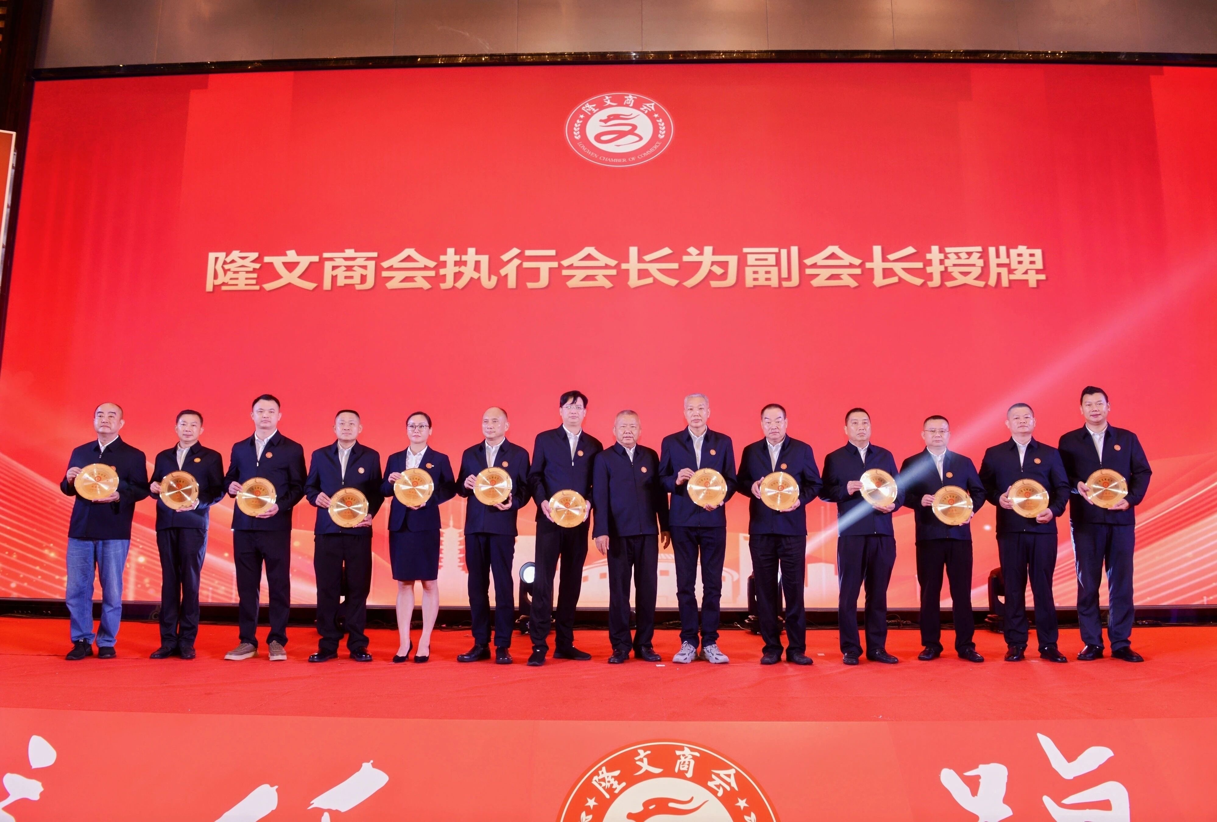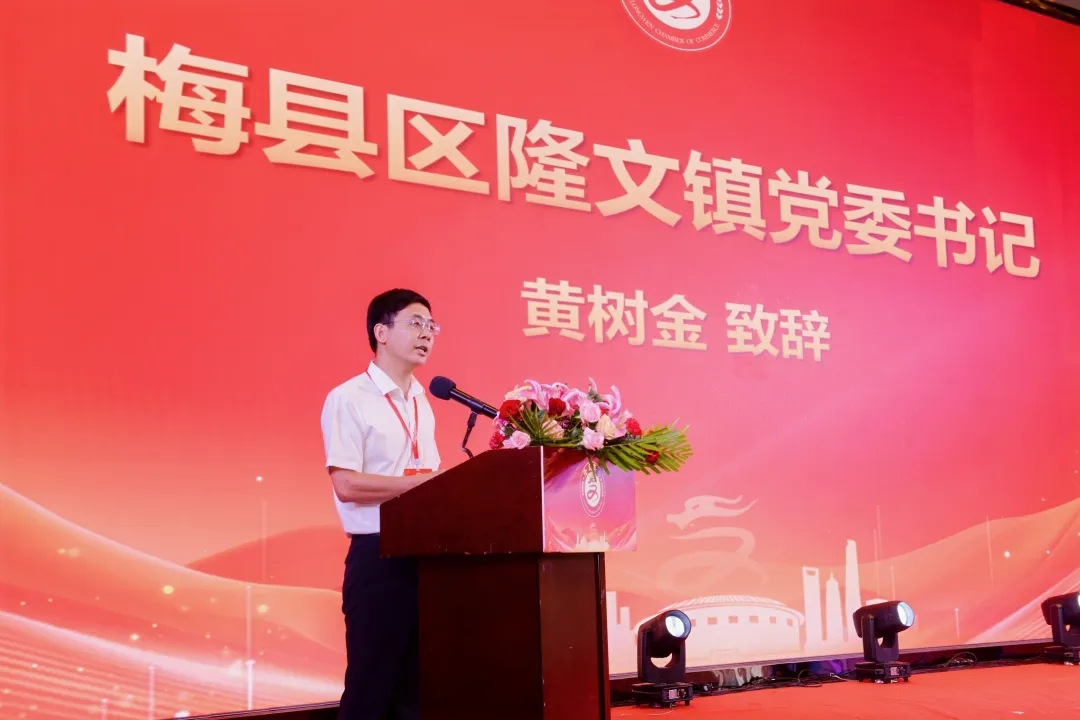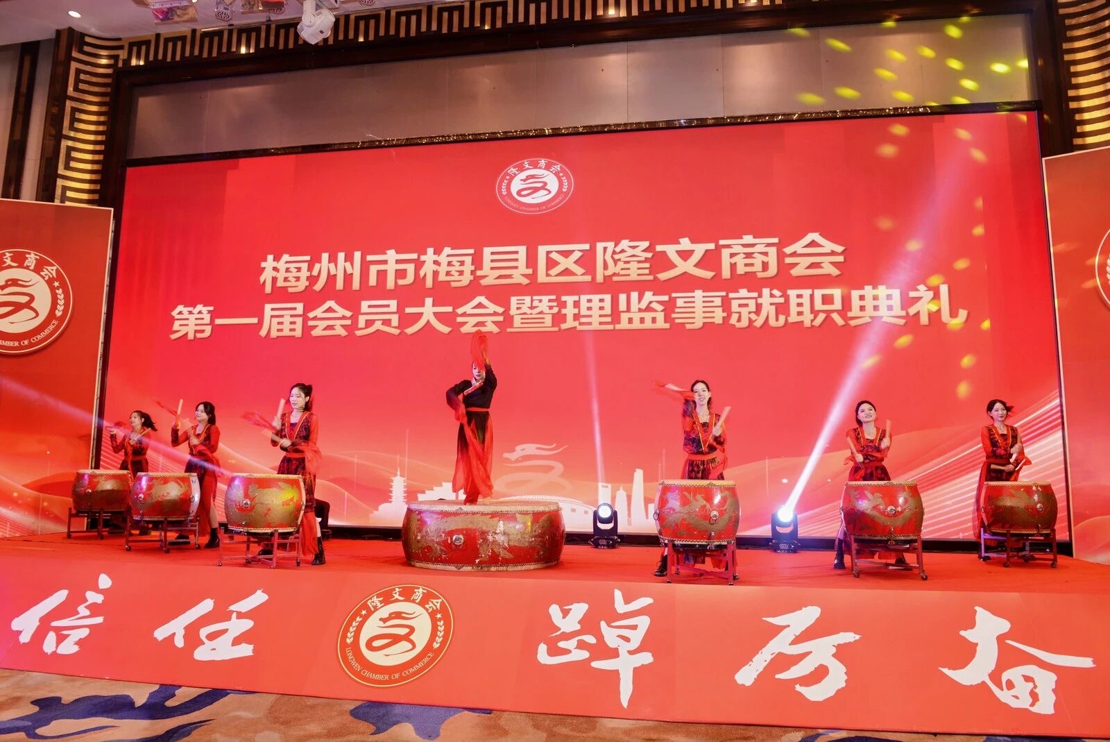 在庆祝中华人民共和国成立76周年之际,9月28日,梅县区隆文商会第一届第一次会员大会暨理监事就职典礼在梅城隆重举行。来自相关部门领导及隆文镇外出乡贤出席,隆文商会第一届理监事成员及全体会员共300多人参加了就职典礼。就职典礼开始,首先全体起立歌唱国歌,然后举行就职仪式。大会宣读了杰出乡贤、印尼著名侨领、梅州市荣誉市民李世镰先生的贺信。梅州市梅县区委常委、统战部部长刘演政及隆文镇党委书记黄树金发表讲话,对隆文商会的成立表示祝贺,并提出殷切期望。梅县区委统战部副部长、区工商联党组书记钟加练为隆文商会授旗。深圳隆文文化促进会会长李伟青致辞,对隆文商会的成立表示热烈的祝贺。隆文商会首届当选会长李德琪致辞,感谢各级部门各级领导对商会成立的关心和重视,感谢社会各界人士及外出乡贤的大力支持,表示商会会秉承“团结信任,踔厉奋发”的宗旨,团结全体会员,听党话,跟党走,凝聚商界力量为家乡建设作出应有的贡献。