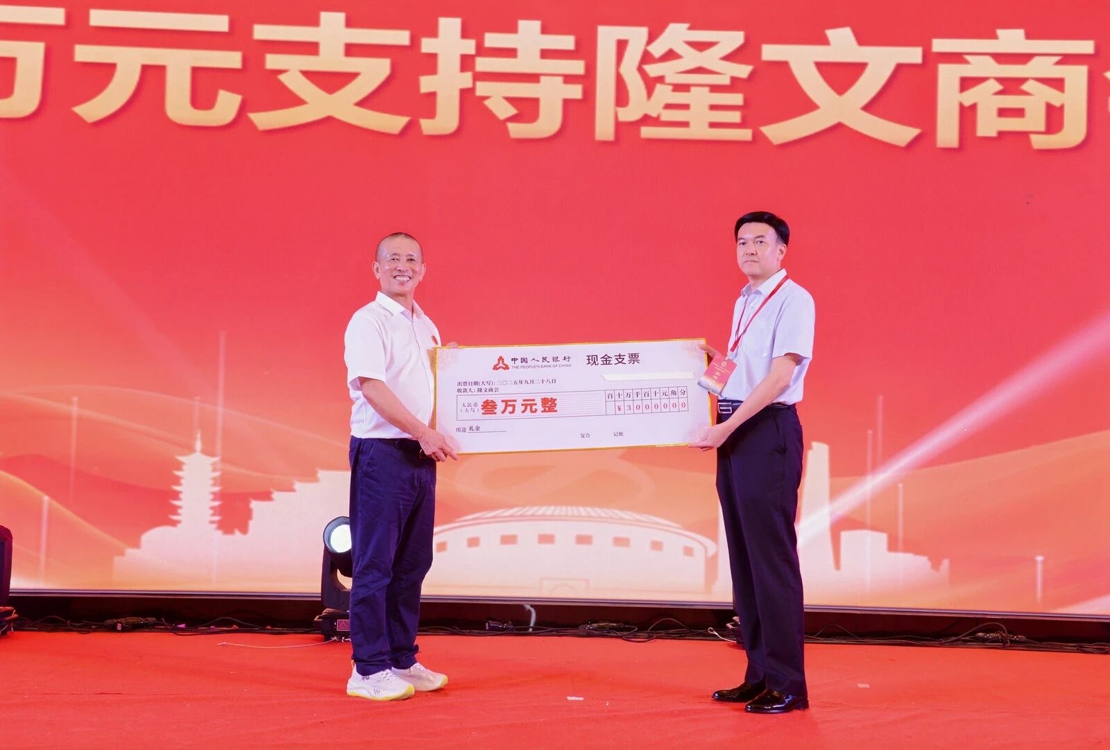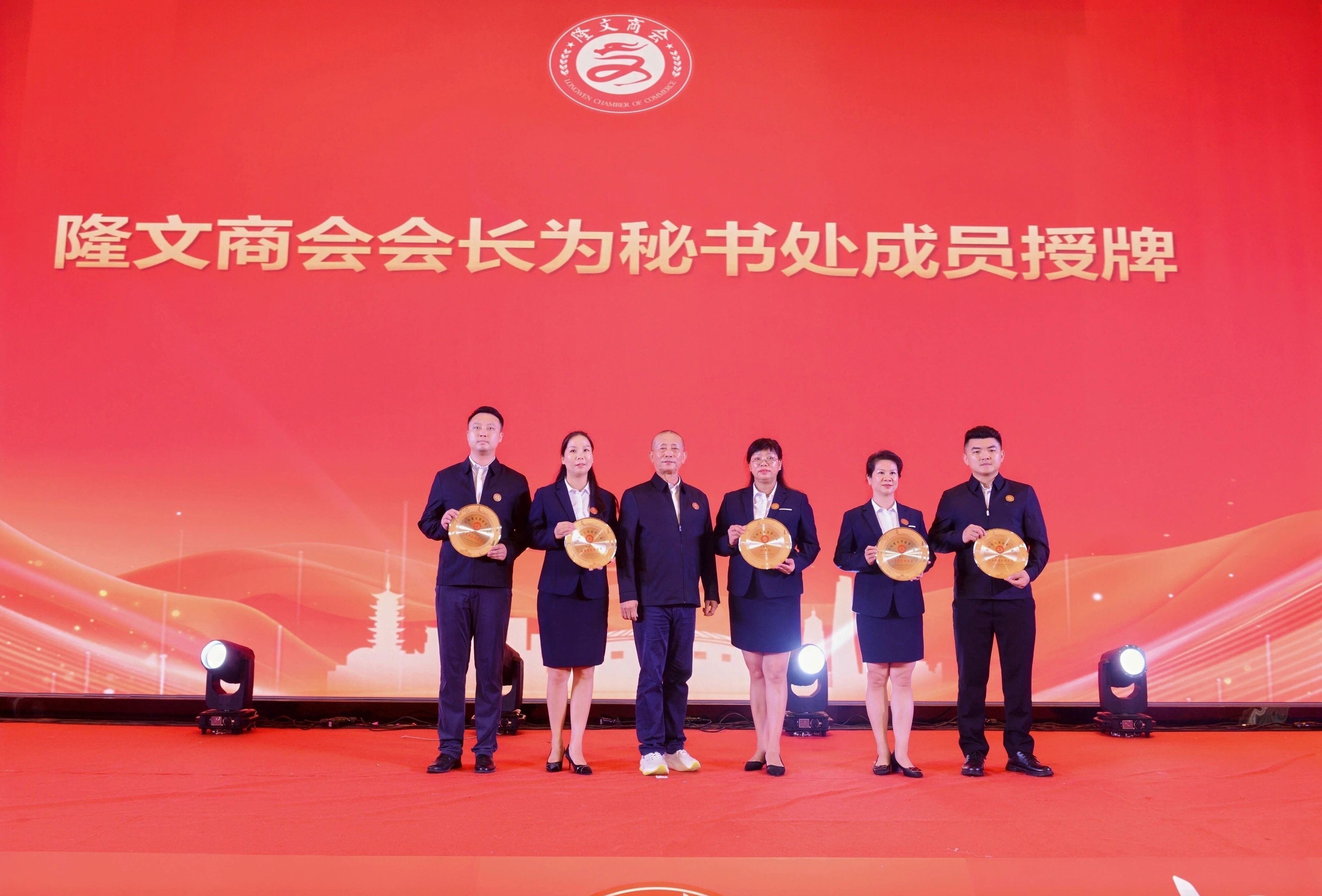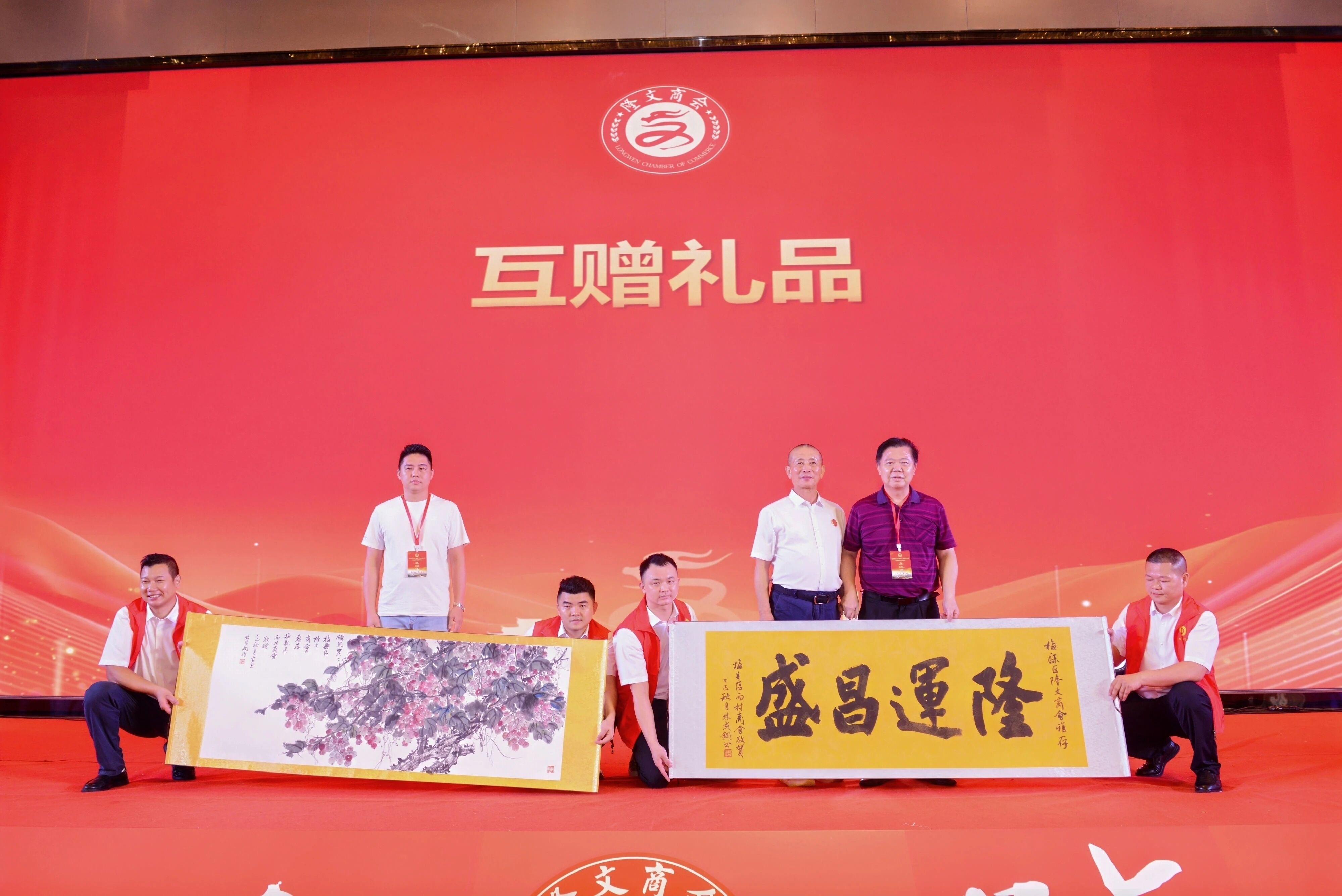 在庆祝中华人民共和国成立76周年之际,9月28日,梅县区隆文商会第一届第一次会员大会暨理监事就职典礼在梅城隆重举行。来自相关部门领导及隆文镇外出乡贤出席,隆文商会第一届理监事成员及全体会员共300多人参加了就职典礼。就职典礼开始,首先全体起立歌唱国歌,然后举行就职仪式。大会宣读了杰出乡贤、印尼著名侨领、梅州市荣誉市民李世镰先生的贺信。梅州市梅县区委常委、统战部部长刘演政及隆文镇党委书记黄树金发表讲话,对隆文商会的成立表示祝贺,并提出殷切期望。梅县区委统战部副部长、区工商联党组书记钟加练为隆文商会授旗。深圳隆文文化促进会会长李伟青致辞,对隆文商会的成立表示热烈的祝贺。隆文商会首届当选会长李德琪致辞,感谢各级部门各级领导对商会成立的关心和重视,感谢社会各界人士及外出乡贤的大力支持,表示商会会秉承“团结信任,踔厉奋发”的宗旨,团结全体会员,听党话,跟党走,凝聚商界力量为家乡建设作出应有的贡献。
