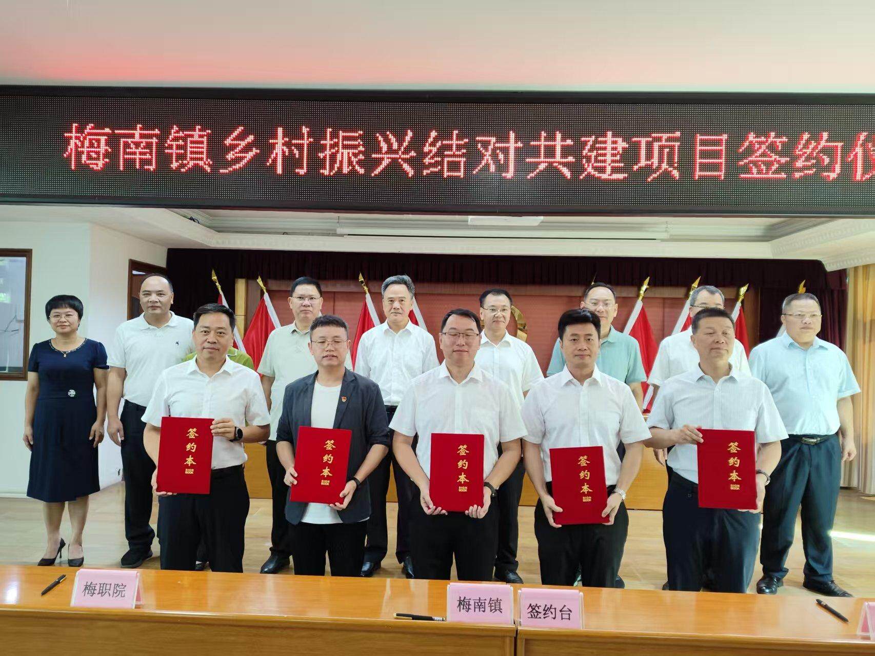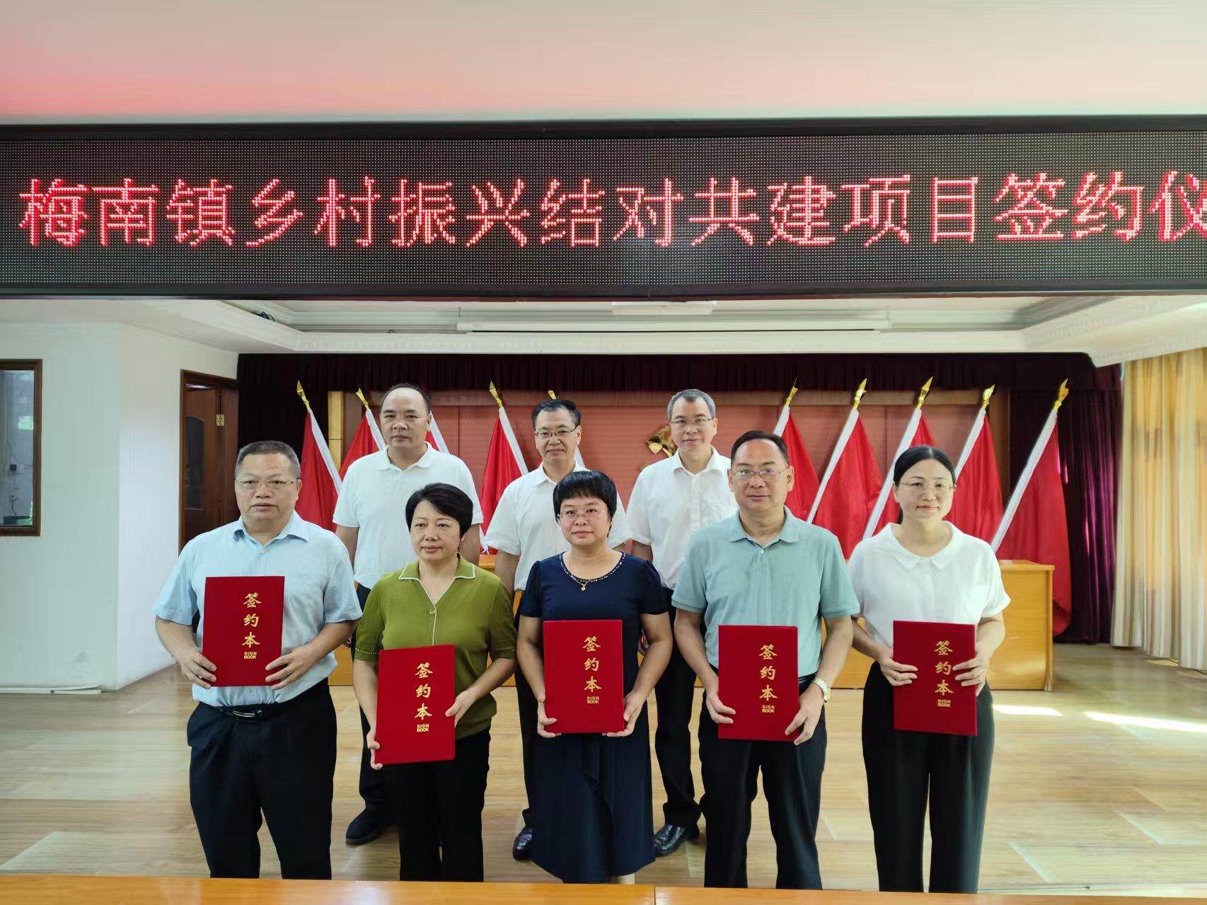 活动中,梅州市人大常委会办公室、梅州市教育局、叶剑英纪念园管理局、建行梅州市分行等乡村振兴驻镇帮镇扶村组团单位与梅南镇签订党建共建协议。梅州市委党校、梅州开放大学、梅州市职业技术学校、广东梅州职业技术学院、梅州市技师学院与梅南镇签订政校合作协议。同时,举行了广东开放大学乡村振兴学院梅州分院梅南教学点正式揭牌。