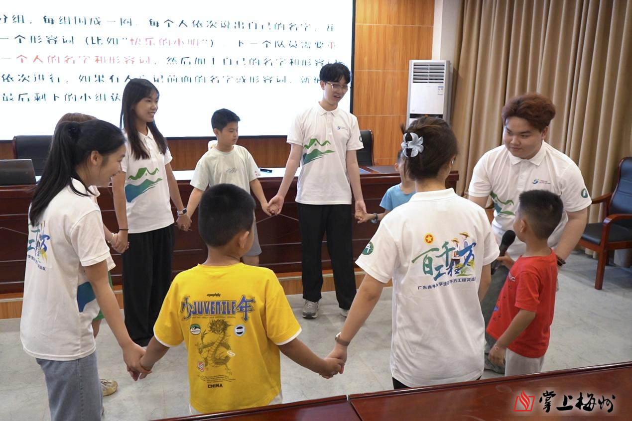 实践队队员与孩子们破冰游戏互动。
