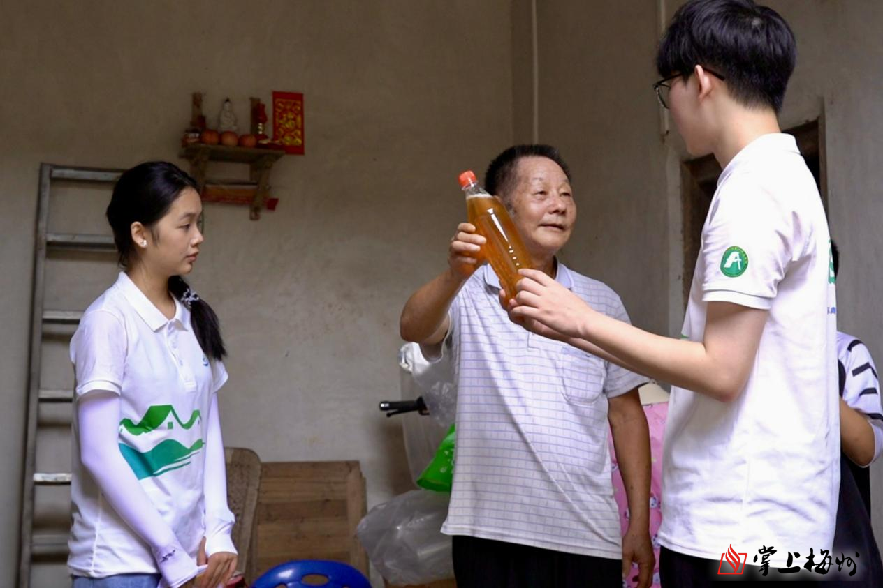 铭记历史是为了更好地开创未来。实践队聚焦水美村特色产业,深入田间地头与生产一线调研。观察蜂农割取金黄原蜜,体验柴火窑鸡的香气四溢,记录“红军酒”酿造技法,探访生态茶园与百香果基地,了解新农人的尝试与期盼。在与水美村党支部书记罗苑华的交流中,罗书记肯定了红色产业对村里经济发展和红色精神传承的带动作用,但他也直指关键短板:“目前主要的缺点是,农户对产品的包装意识不强。”针对这一痛点,实践队发挥专业所长,为蜂蜜、窑鸡、“红军酒”等水美村特色农产品设计了一系列融合地方文化元素的包装并拍摄制作了宣传短片,助力产业知名度提升、销售增长与升级发展。