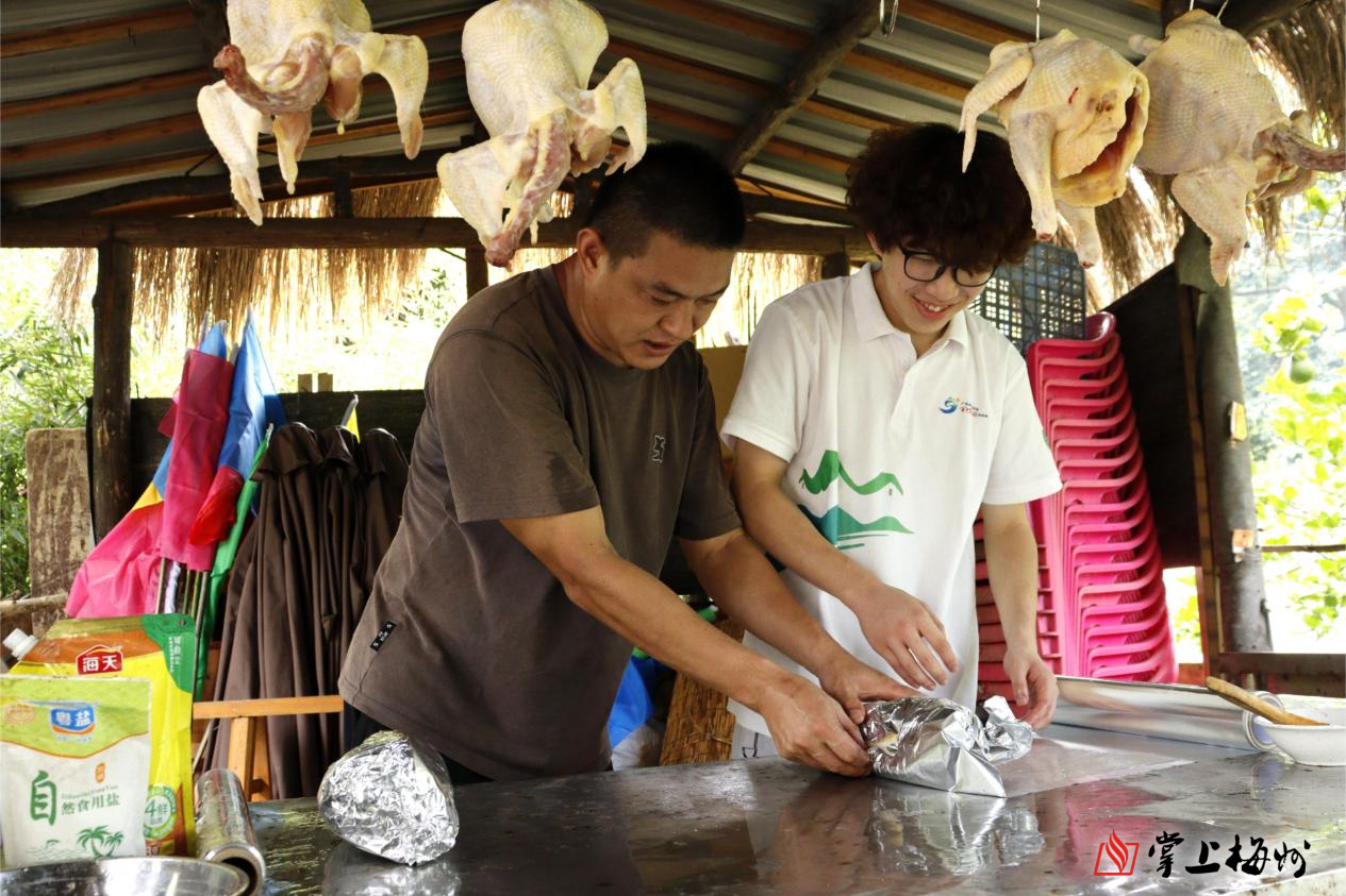 实践队队员参与水美窑鸡制作。