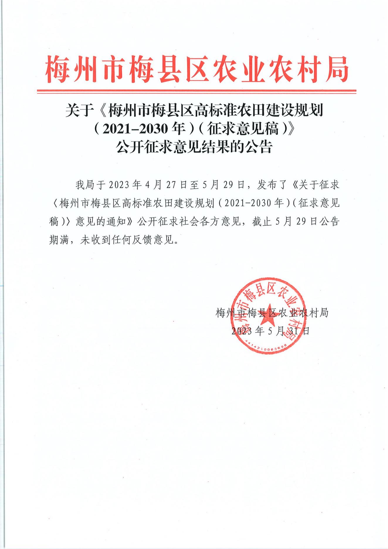 关于《梅州市梅县区高标准农田建设规划(2021-2030年)(征求意见稿)》公开征求意见结果的公告
