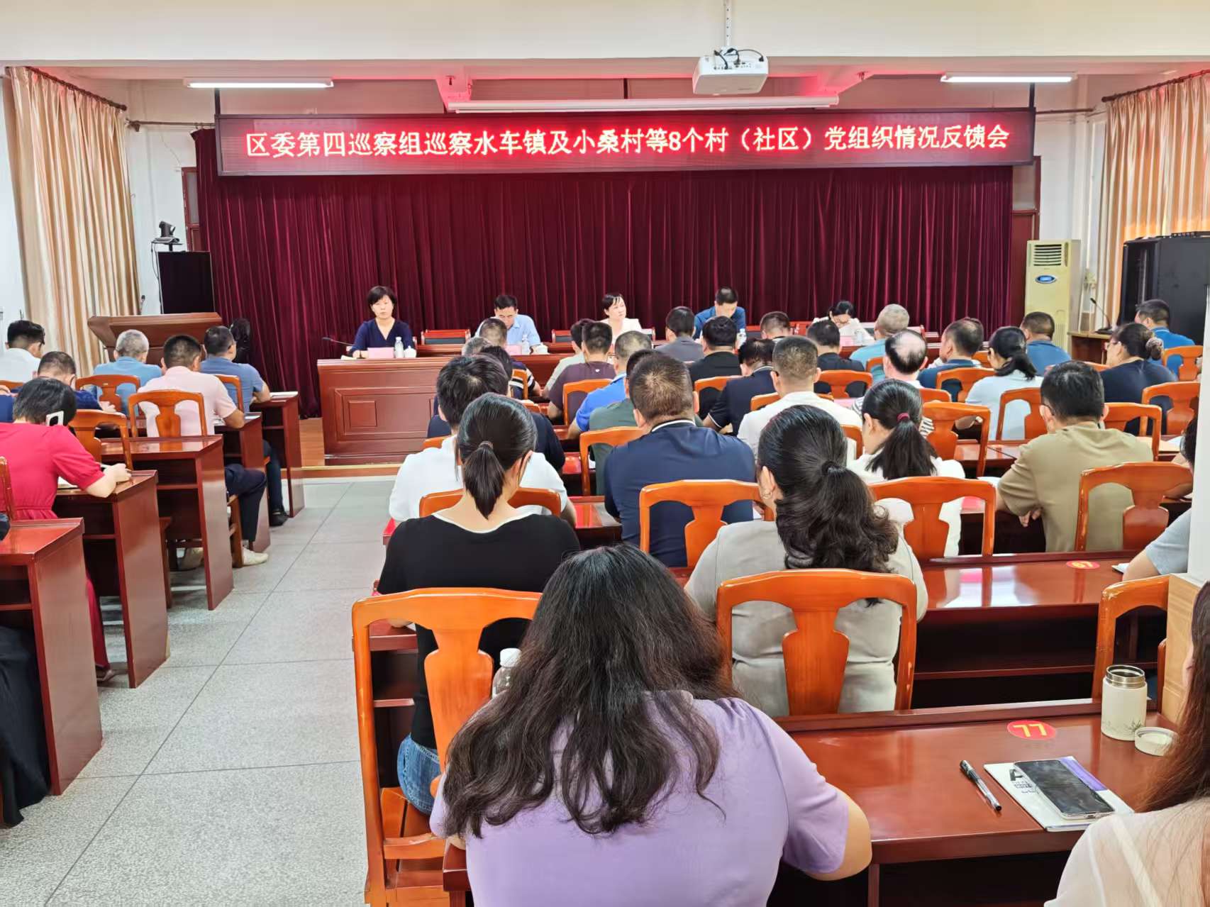 区委第四巡察组副组长和联络员,水车镇党政领导班子成员、全体镇机关干部、各村党支部书记参加会议。