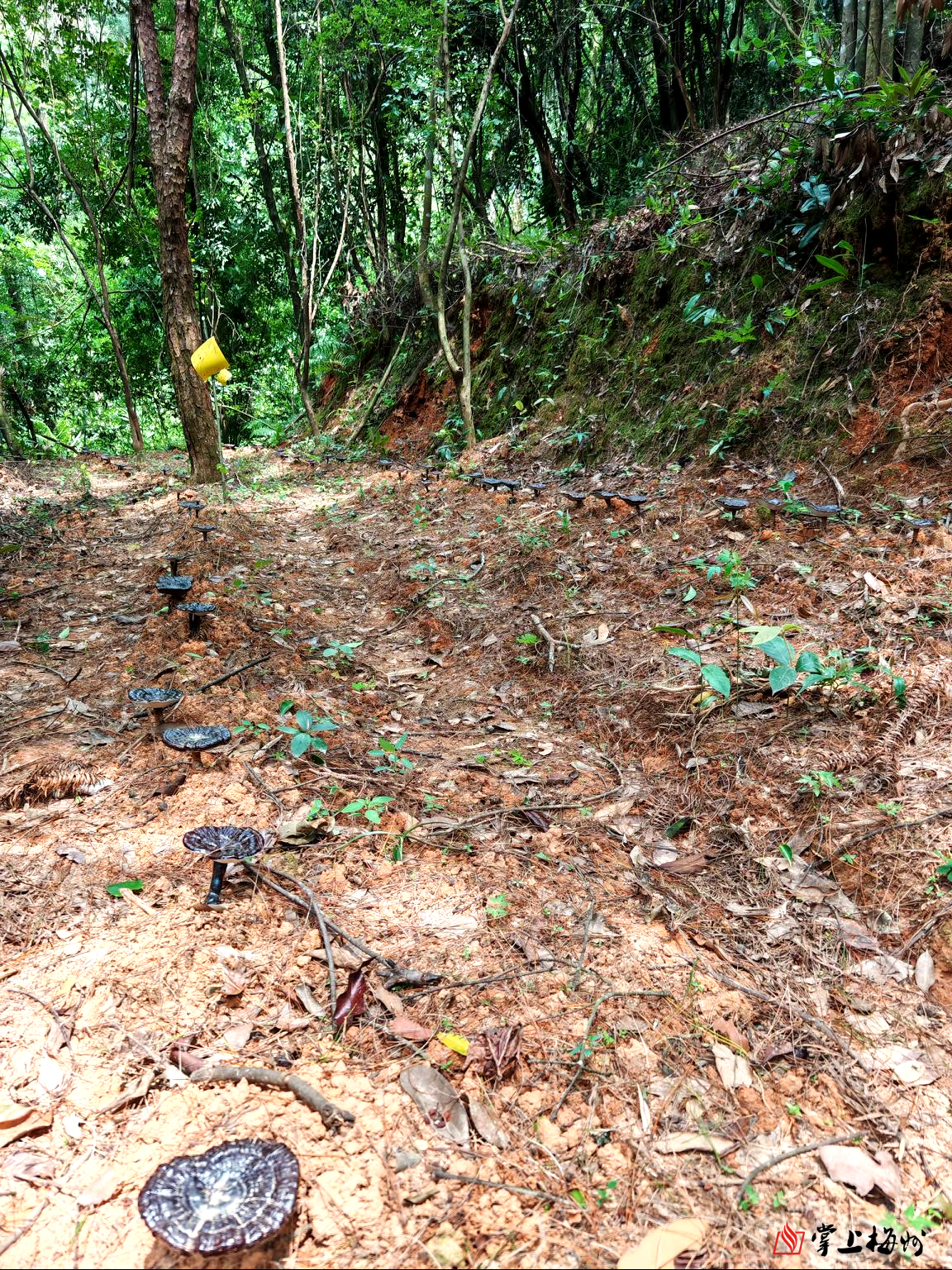 今年3月以来,特派员团队主动对接镇村,多次到杨化村开展实地考察,选定了2亩郁闭度适中、腐殖质丰富的杂木阔叶林作为种植示范基地,并深入山林指导村民开辟种植带6条,现场开展“理论+实操”培训,手把手指导村民撒石灰粉、选出芝口、脱袋、科学摆放等,并在紫芝生长过程中,深入林地开展全方位技术指导。针对白蚁防控这一难题,传授绿色防控技术,避免使用高毒农药,既保护了生态环境,又保障了紫芝的品质;在出芝管控、芝蕾管理环节,手把手教学,详细讲解不同生长阶段的管理要点,从温度、湿度调节到采收要求,每一个细节都不放过。