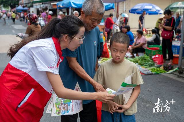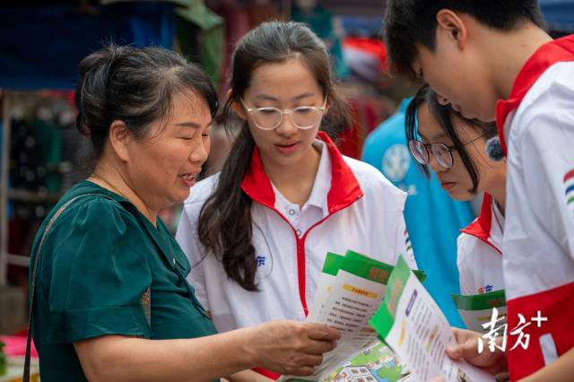 实践不止于调研,更在于服务民生。针对盛夏蚊虫隐患,青衿逐风突击队成员积极投身登革热和基孔肯雅热防控宣传工作。队员们提前整理预防知识手册,深入圩镇街道,向商户、村民发放资料。他们将“清除积水防蚊孳生”“正确使用驱蚊用品”等核心要点转化为通俗易懂的方言讲解,示范家庭防蚊技巧,让防控意识深入人心。这场志愿服务不仅为“美丽石坑”筑牢了卫生屏障,更让青春力量融入乡村治理,在与村民的亲切交流中互动中传递温暖与担当。