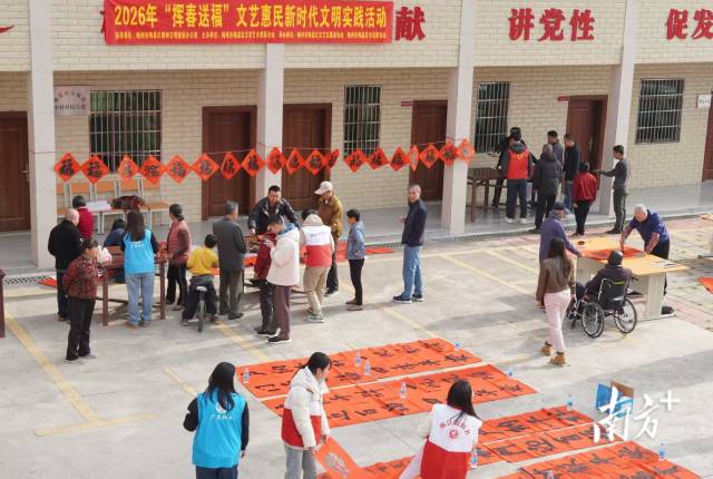 活动现场秩序井然,志愿者们化身“暖心使者”。他们引导群众挑选对联,小心翼翼地协助晒、收对联,防止墨汁晕染纸张,用细致周到的服务呵护这份带着温度的文化祝福。考虑到行动不便的老人和特殊群体,镇政府专门组织志愿者开展“送福到家”服务,将饱含祝福的春联送到群众家中。喜庆的“春联红”与耀眼的“志愿红”相互映衬,绘就动人新春图景。