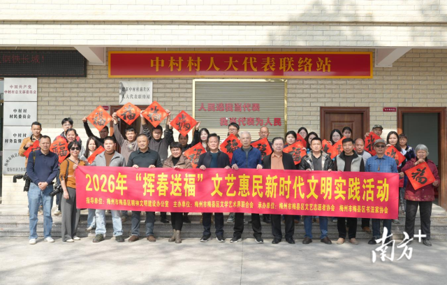 春回大地,岁启新元。2月4日,恰逢立春时节,梅县区石扇镇中村村暖意融融、热闹非凡,现场红纸翻飞如蝶舞、墨香四溢漫庭院,一场由石扇镇党委、政府与梅县区文联联合举办的“挥春送福”写对联活动在此举行,以笔墨为媒,将客家年味与新春祝福送到群众心坎上。