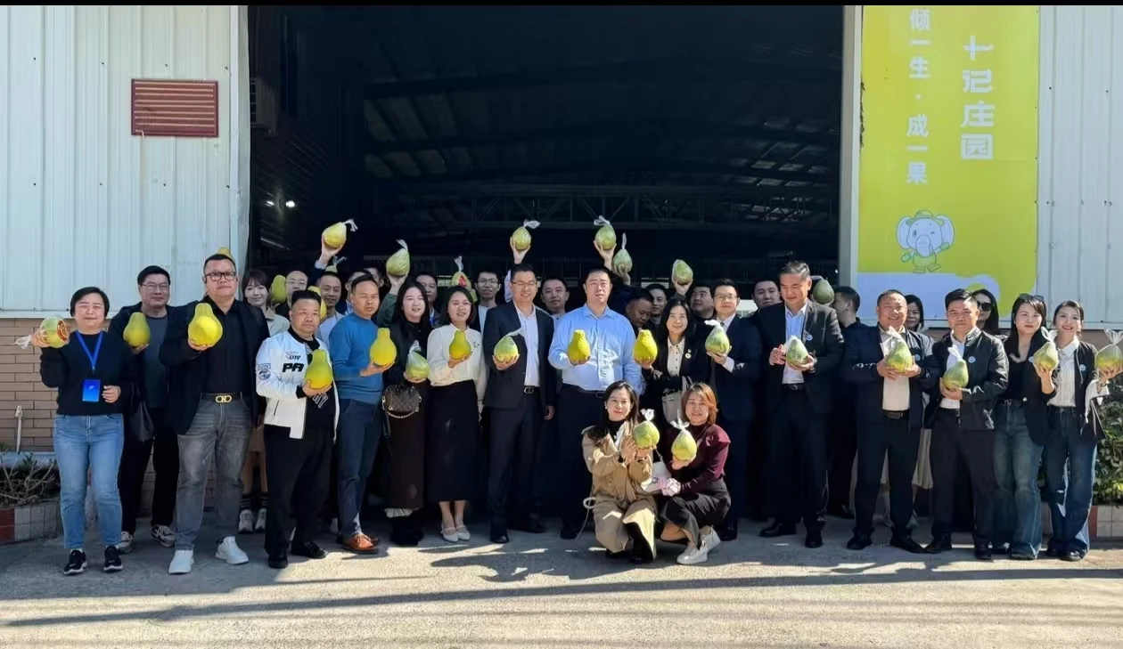 考察团首站走进松口镇横东村,实地感受“百千万工程”典型村建设成效,深入了解当地以农文旅融合为抓手,盘活乡村资源、激发振兴活力的创新实践,对横东村在风貌提升、产业导入等方面的成效给予积极评价。随后,考察团走访了广东十记集团有限公司,深入了解农产品深加工及产销一体化运营情况,切身感受到梅州依托生态优势发展特色农业产业的强劲势头,并就农业规模化、标准化、品牌化发展展开探讨。考察团还前往雁洋镇南福金柚种植基地,详细了解金柚种植管理、产品深加工及文创产品开发情况,并围绕种植技术升级、产业链延伸、品牌营销推广等深入交流,共同探讨金柚产业价值提升的合作机遇。