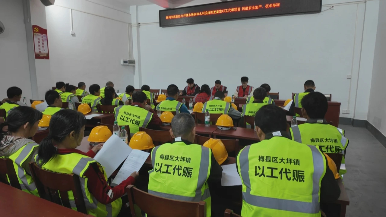 走进大坪镇的项目现场,工作人员为参与项目建设的村民开展岗前安全与技术培训,详细讲解施工规范和注意事项。随后,参加完培训的村民身着统一工装,手持专业工具将渠道旁的杂草枯枝清理干净。据悉,大坪镇以工代赈项目将重点推进陂头修复、混凝土渠道修复、挡墙护岸加固等工程。在改善家乡水利设施的同时,实现了在家门口就业增收。