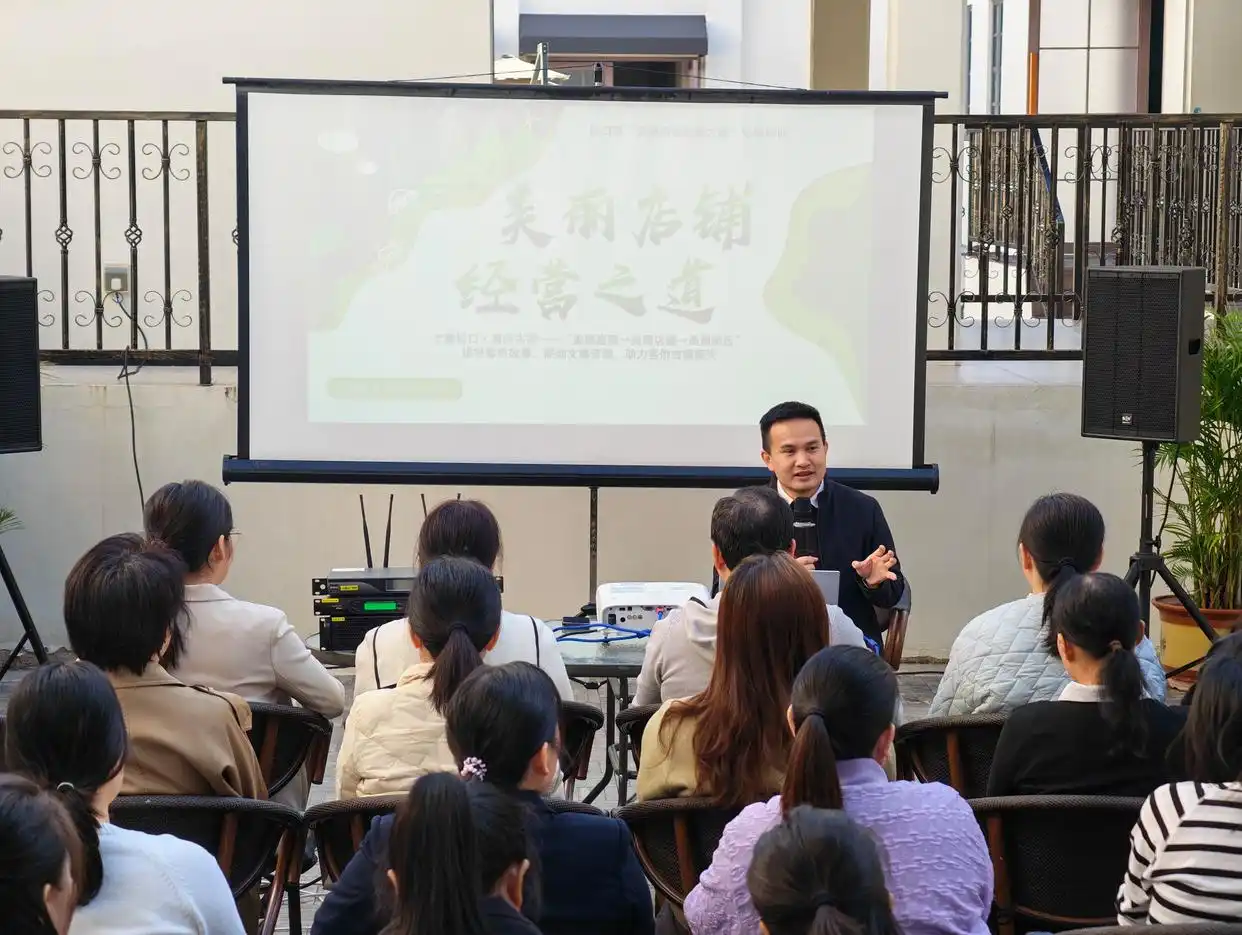 授课中,专家采用理论讲解与案例分析相结合的方式,语言通俗鲜活、重点突出,既有政策解读,又有实操技巧拆解。学员全程专注投入,认真记录,互动答疑环节踊跃提问,围绕文化挖掘、平台运营、客源维护等实际难题开展交流,现场讨论氛围热烈,精准细致的解答让大家茅塞顿开、收获颇丰。