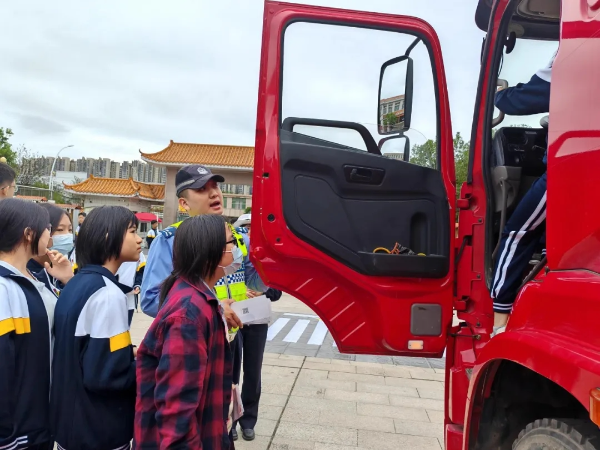 此次活动摒弃了传统的课堂讲授模式,创新性地采用了户外模拟情景体验的方式。在现场,民警们精心设置了模拟大货车驾驶位及周边盲区范围。学生们在民警的引导下,轮流坐上驾驶室,亲身体验司机的视角。当他们从高高的驾驶舱望出去,才真切地认识到,车辆前方、侧方及后方存在着大片“看不见”的危险区域,这就是致命的大货车视觉盲区。 同时,民警通过实物演示和讲解,向学生们详细介绍了大货车在转弯时产生的“内轮差”区域,这个看似可以通行的弯道内侧,实则隐藏着极大的碰撞与碾压风险。 这种“沉浸式”的体验,让学生们得以亲眼见证、亲身感受潜在的交通危险,极大地震撼了他们的心灵,对“远离大货车”有了更为深刻和直观的理解。民警借此机会,详细讲解了如何识别大货车盲区、在道路上行走或骑行时如何主动规避这些危险区域,以及“不与大货车争道、不紧贴大货车行驶、不处于大货车转弯路径内侧”等基本防护知识。 活动尾声,民警向师生们发放了精心编制的交通安全宣传资料,鼓励学生们将学到的知识带回家中,与家人分享,共同筑牢交通安全防线。 此次大货车盲区警示教育活动,通过生动、直观的情景模拟,将交通安全知识深植于学生心中,有效提升了学生们“知危险、会避险”的自我保护能力,为构建平安校园、保障学生出行安全起到了积极的推动作用。接下来,梅县公安将持续开展形式多样的交通安全宣传教育活动,全力守护群众“车轮下的平安”。
