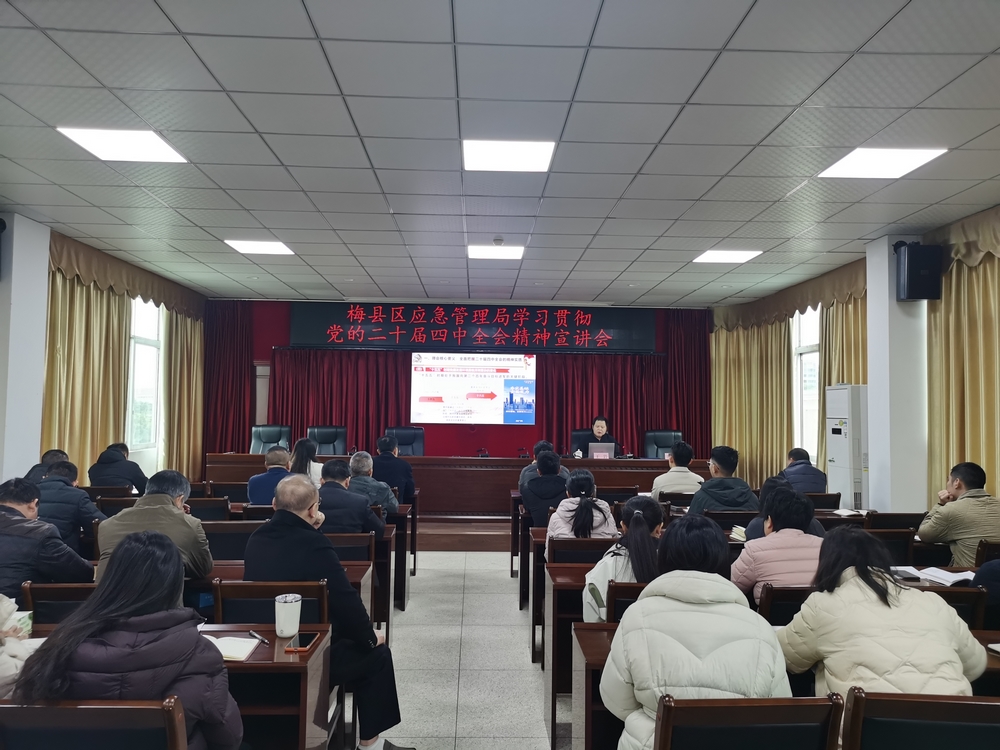 为深入领会党的二十届四中全会精神的重大意义、核心要义与实践要求,12月26日,梅县区应急管理局召开专题宣讲会,集中学习贯彻党的二十届四中全会精神。会议邀请梅县区委宣讲团成员、梅县区委党校培训室主任王岩同志作专题宣讲,全局干部职工参加学习。