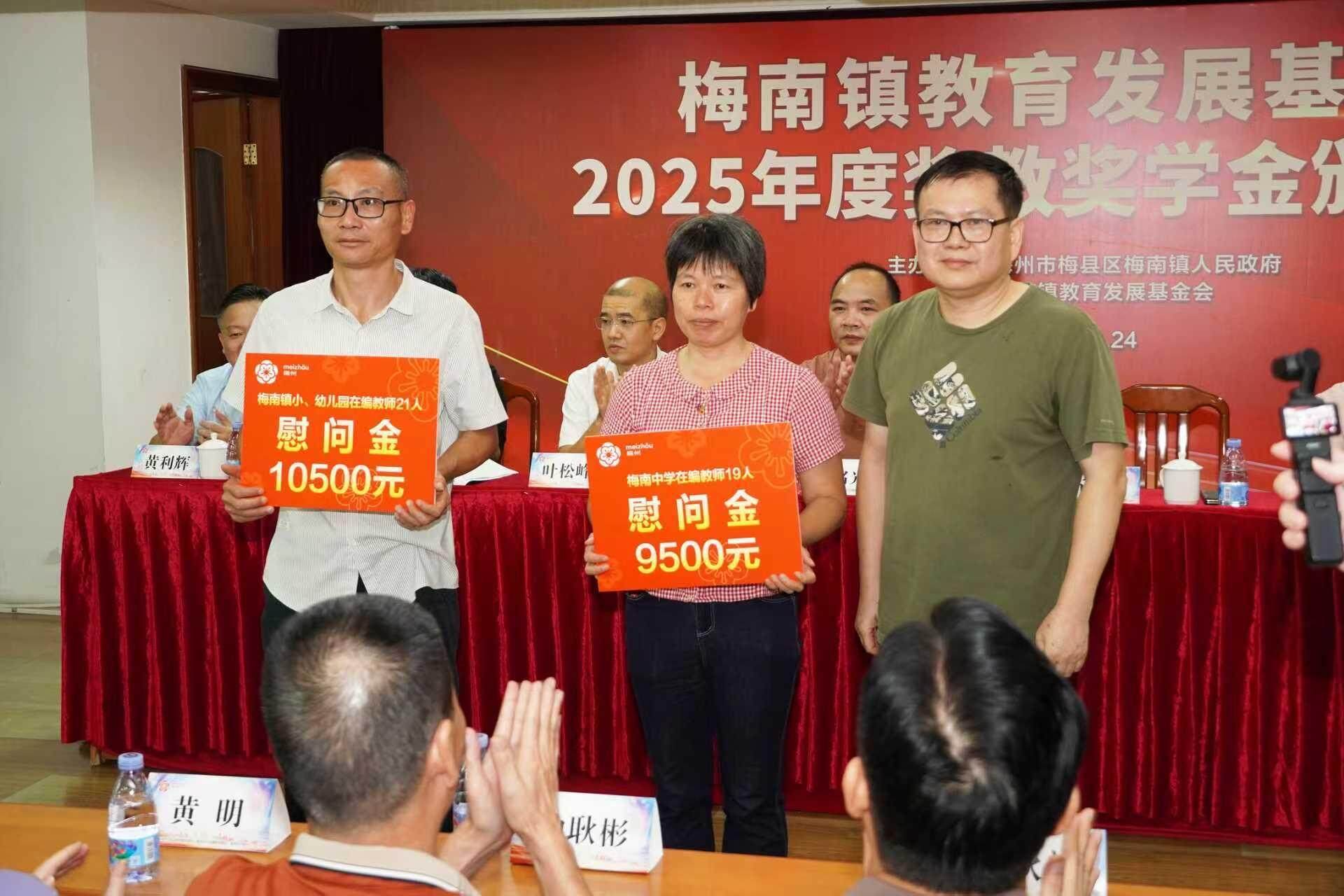 敬颂师恩,薪火相传。8月24日,梅南镇教育发展基金会2025年度奖教奖学金颁奖大会在梅州市梅县区梅南镇顺利召开,现场表彰慰问了梅南镇全体教师,对期末质检取得优秀成绩、各方面进步明显和在学科竞赛中取得优秀名次等的学生们进行奖励,此次颁发奖学奖教金共计80800元。