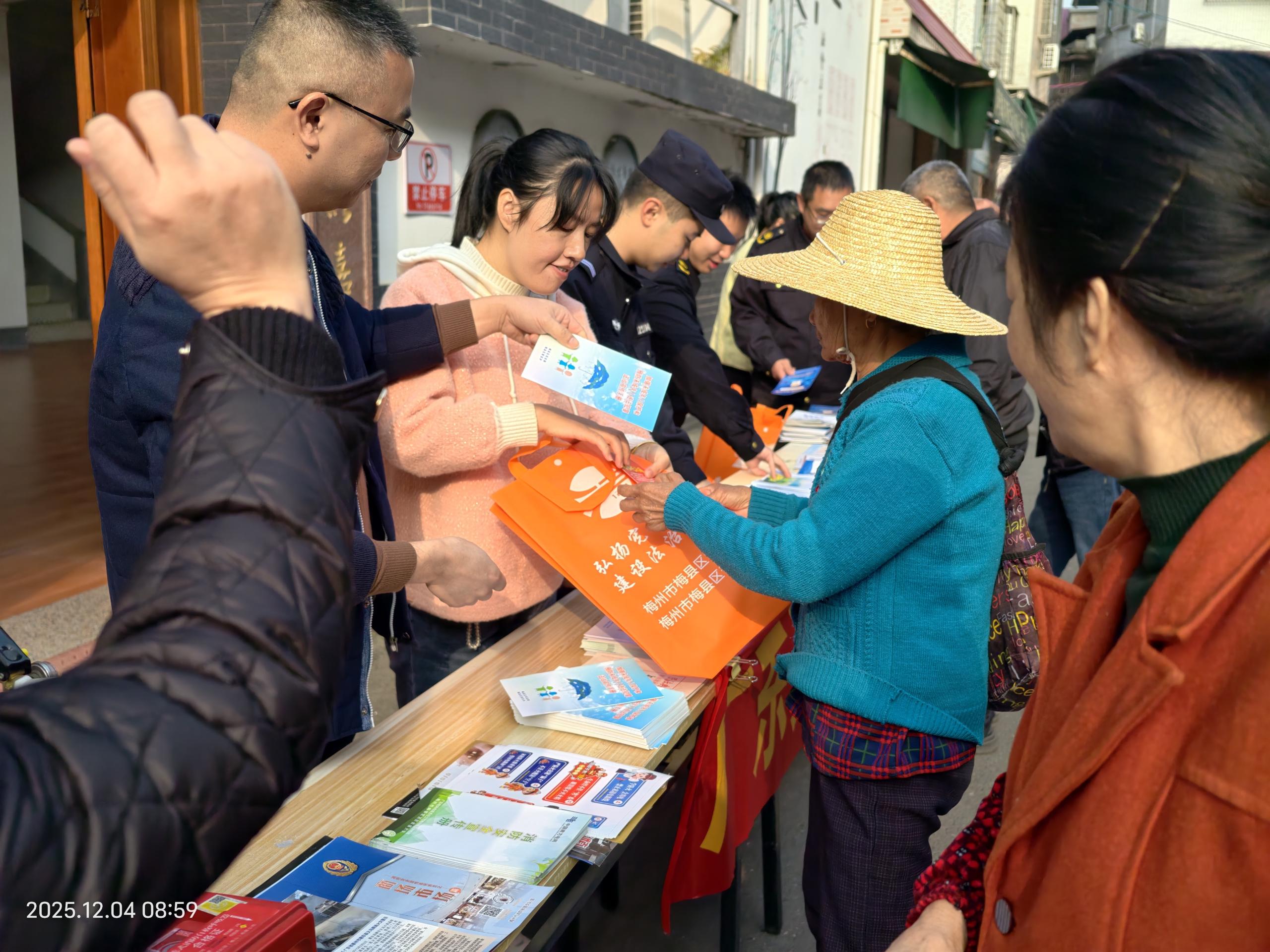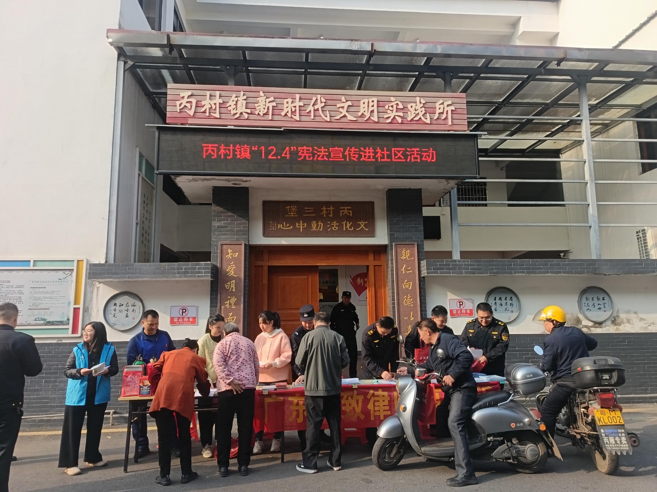 12月4日,丙村镇在圩镇开展“12·4”国家宪法宣传日活动,通过发放宣传资料和礼品、现场解答问题等形式重点对宪法、民法典、消防安全、反诈、扫黑除恶、禁毒反邪、森林防火、食品安全等知识进行宣传,不断提升群众的法治思维和法律意识。