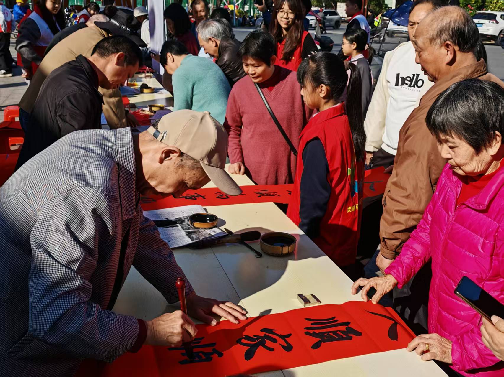 2月6日,团梅县区委、丙村镇人民政府等单位联合举办“翰墨迎春·平安送暖”送春联活动,书法家协会会员在现场挥毫,一幅幅吉祥喜庆的春联和“福”字跃然纸上,吸引了众多居民驻足参与并领取。书法家们将传统文化与新春喜庆相融合,以笔墨传递温情,让丙村群众在浓郁墨香中感受中华优秀传统文化的魅力,共享节日欢乐。