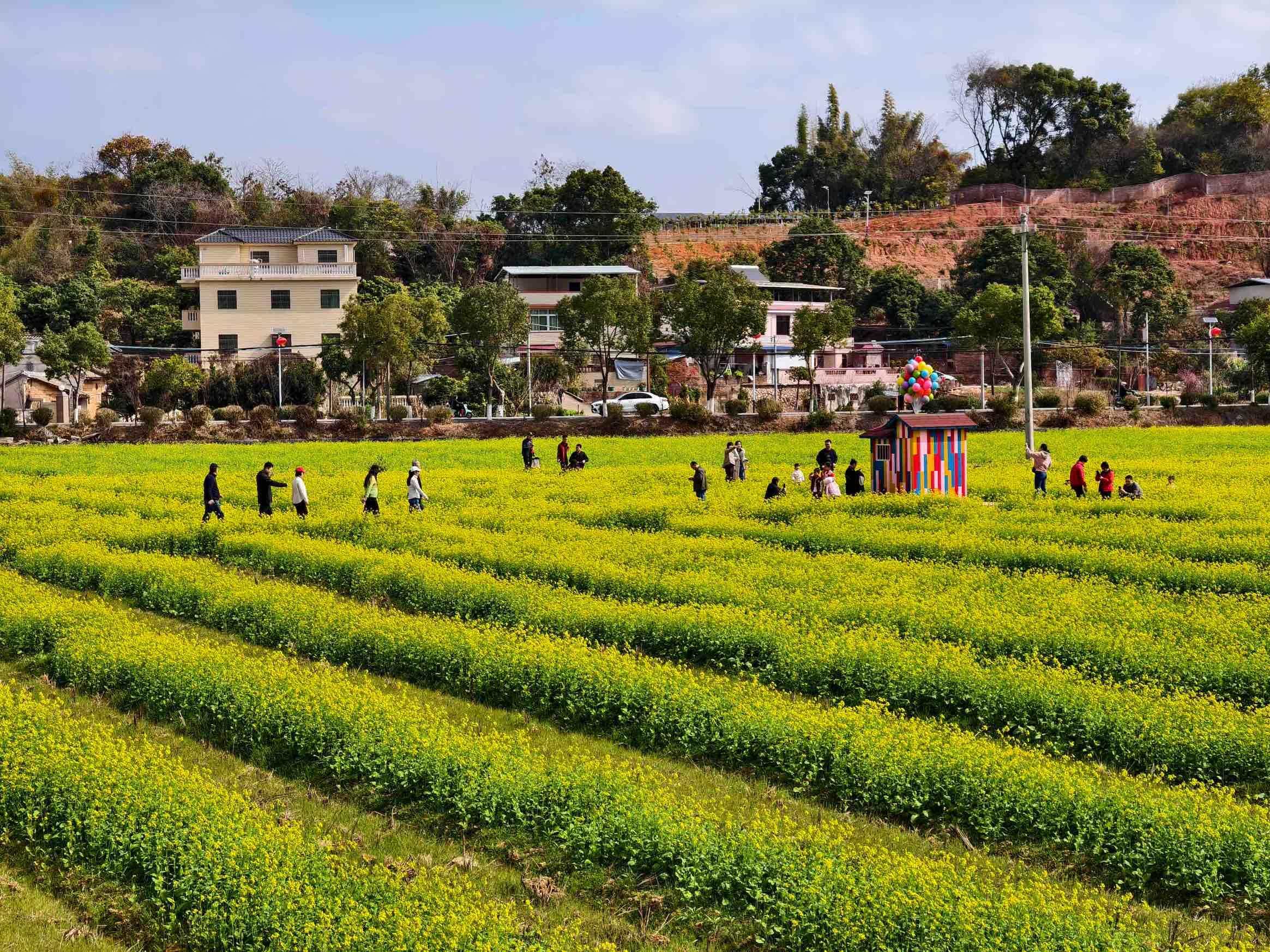 春回大地,万物竞发。当高铁穿过粤东群山,抵达梅州西站,这里便是被誉为梅州“城市后花园”的——梅县区南口镇。每年春节前后,南口镇总能成为市民游客的热门打卡地。侨乡村两百多亩油菜花在阳光下泛着金光,宛如大地织就的金色锦缎,微风拂过,花浪起伏,空气中弥漫着淡淡的花香,一幅幅秀美的乡村振兴画卷正徐徐展开。