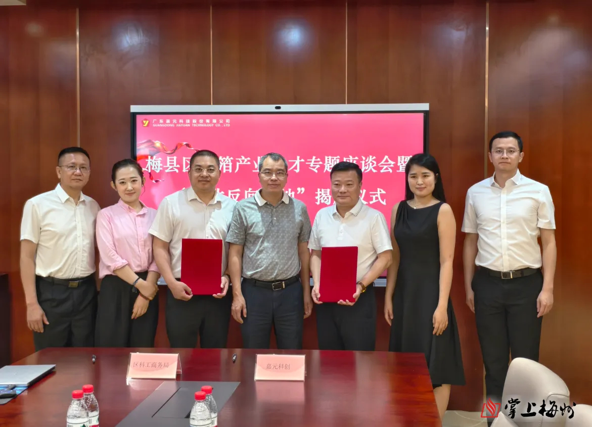 活动现场,梅县区科工商务局与嘉元(深圳)科技创新有限公司首先围绕铜箔产业发展前景、产业人才培育情况、人才引进政策等主题展开深入交流。随后,双方共同签订《梅县区铜箔产业“人才反向飞地”(深圳)战略合作协议》,并为“人才反向飞地”(深圳)揭牌。