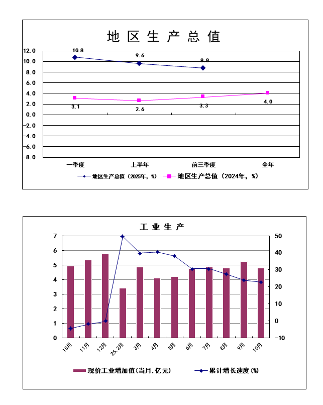 从三大门类看:1-10月,全区规上采矿业实现增加值同比增长9%;规上制造业实现增加值同比增长25.7%;规上电力热力燃气及水的生产和供应业实现增加值同比增长18.1%。