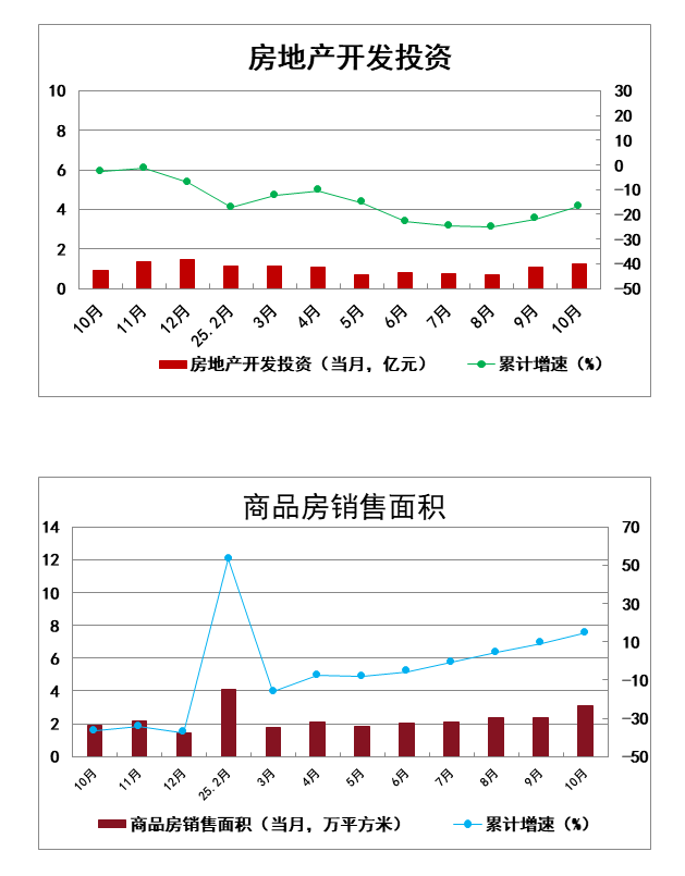 2025年1-10月全区商品房销售面积完成21.75万平方米,同比增长14.4%;其中:住宅类面积完成16.31万平方米,同比下降0.6%。全区商品房销售额完成10.9亿元,同比增长12.4%;其中住宅类销售额完成8.44亿元,同比增长3.5%。商品房销售均价5010.37元/平方米,同比下降1.8%。