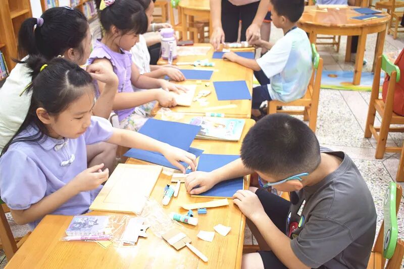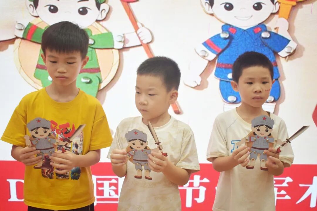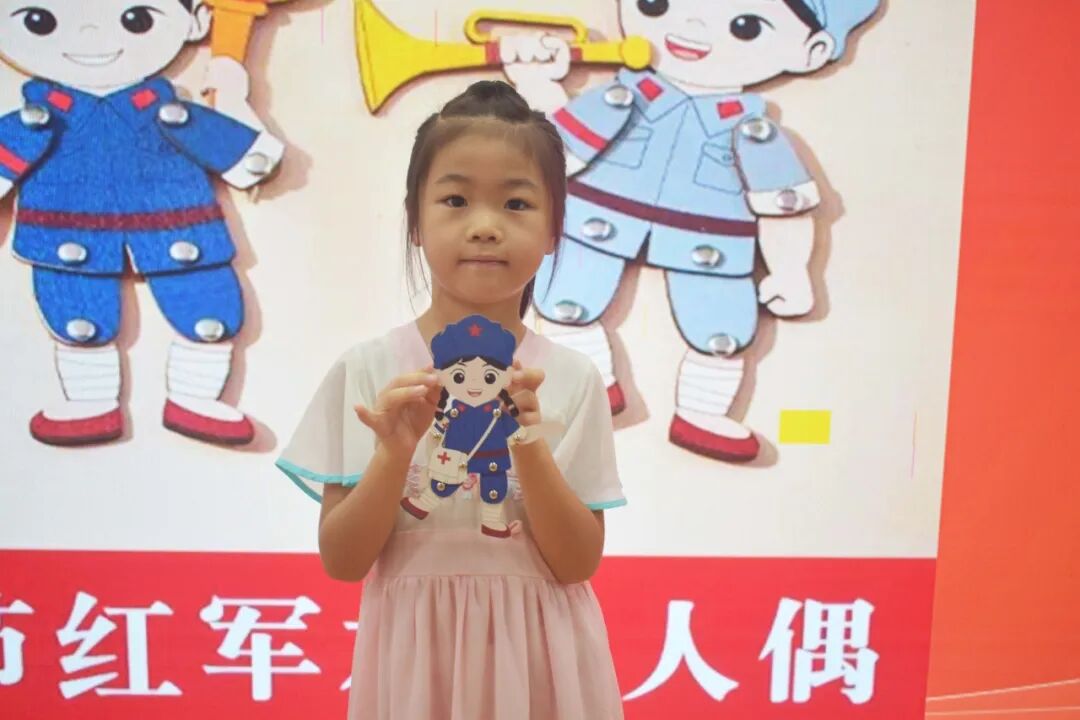 活动尾声,亲子协作 DIY 红军木偶:家长辅助整理材料,孩子专注装饰细节,一个个鲜活的红军木偶完成,为整场红色阅读活动画上温暖句号。