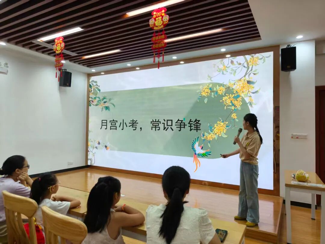 10月1日上午,“柚” 见中秋・点亮团圆亲子阅读手工活动在一楼新时代文明实践中心温馨启幕。活动伊始,老师为孩子们分享月亮主题绘本,带他们了解中秋由来、感受月亮的浪漫意趣;绘本结束后,趣味知识闯关随即展开,“中秋有哪些别称?”“月亮上有哪些神话?” 孩子们纷纷举起小手抢答,现场满是欢快热烈的氛围。