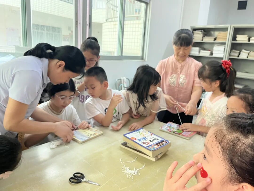 梅县区图书馆工作人员在现场示范线装书的制作流程——从纸张的对齐到穿针引线的手法,都讲解得细致入微。