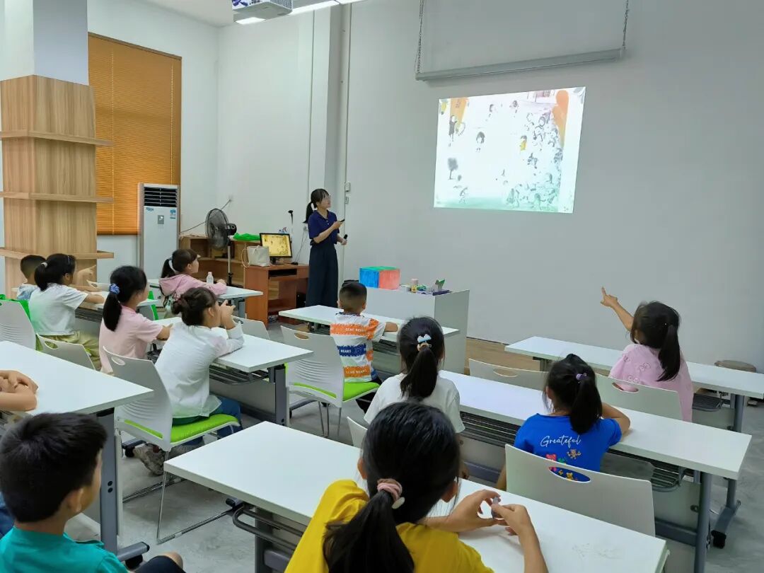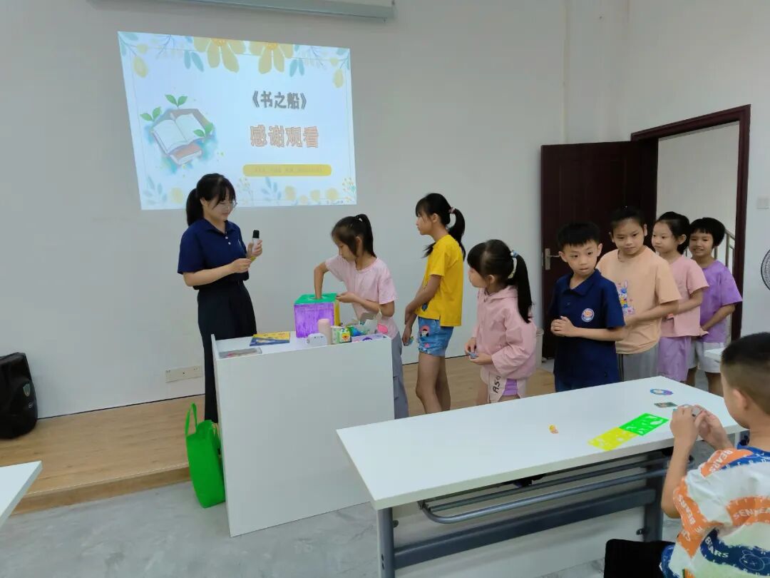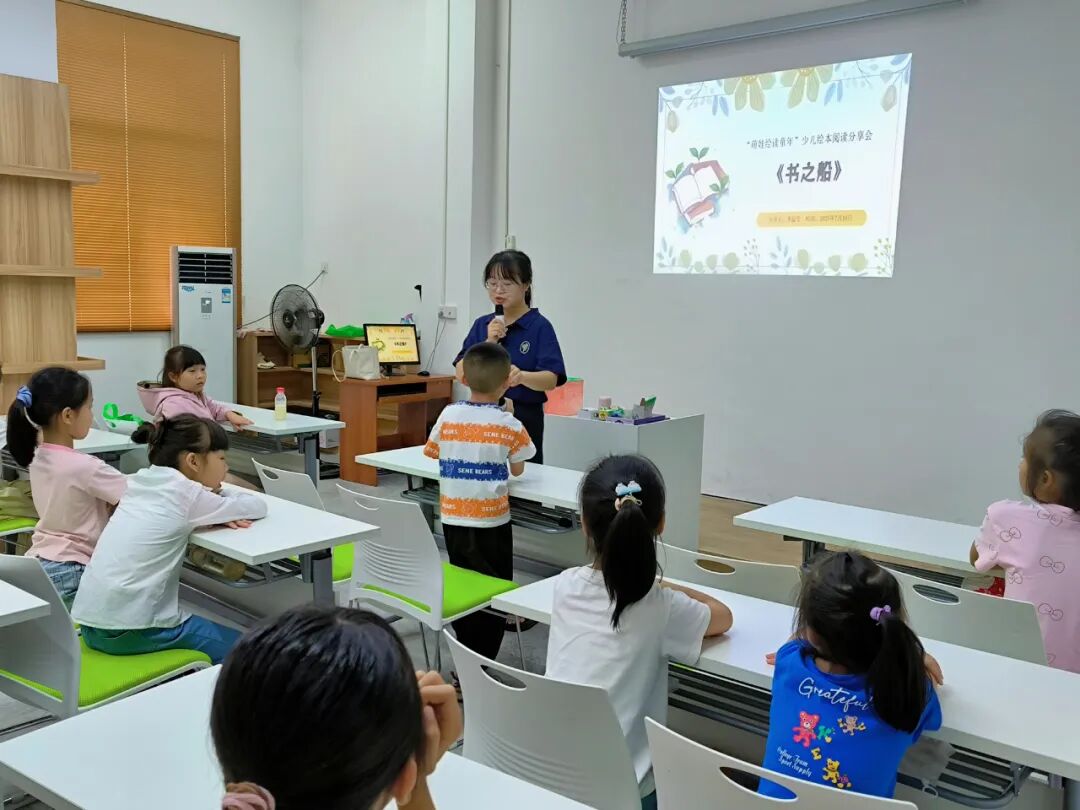 2025年7月10日上午,松口图书馆在多功能室开展“萌娃绘读童年”少儿绘本阅读分享会之《书之船》活动。