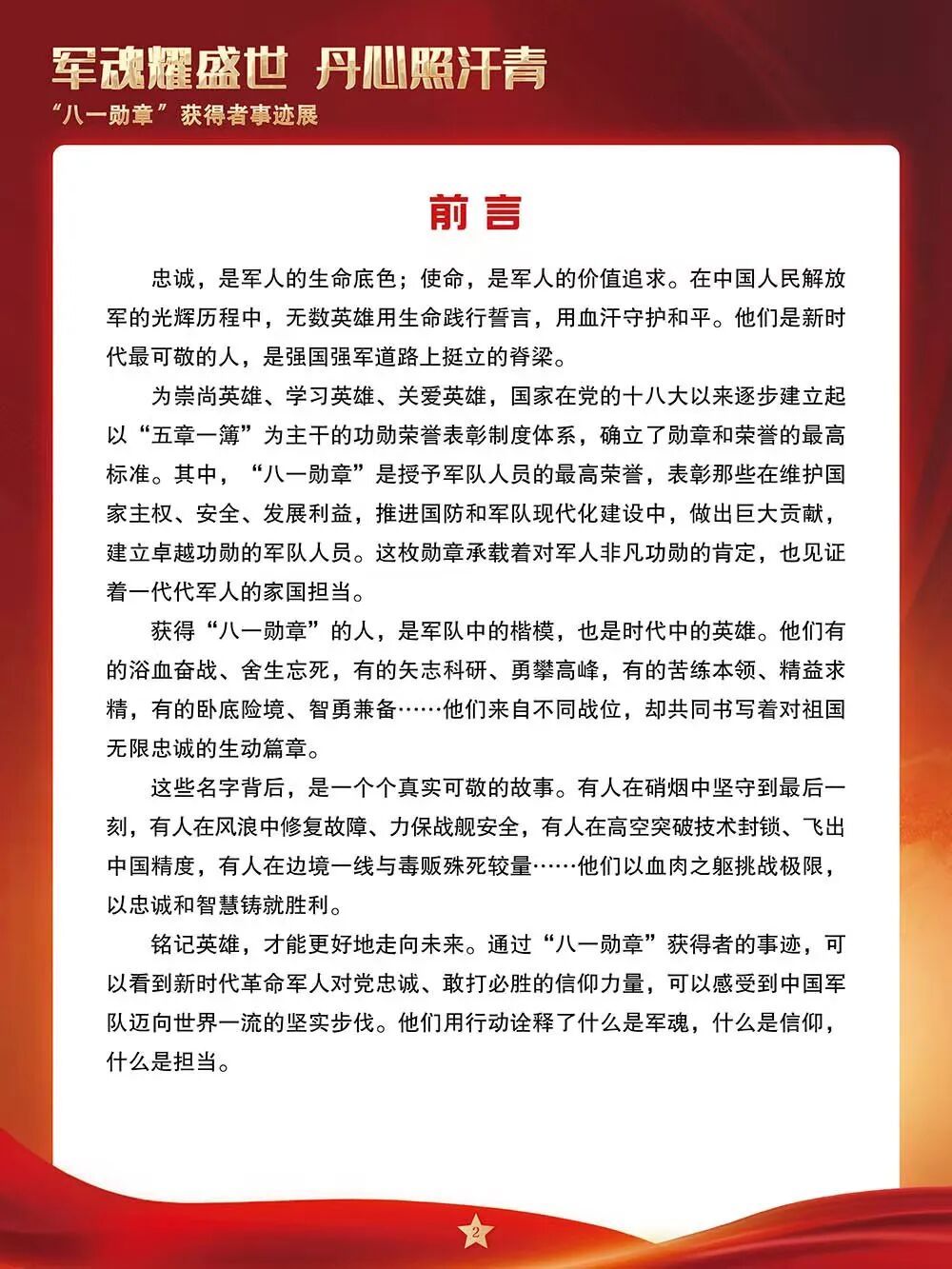 为崇尚英雄、学习英雄、关爱英雄,国家在党的十八大以来逐步建立起以“五章一簿”为主干的功勋荣誉表彰制度体系,确立了勋章和荣誉的最高标准。其中,“八一勋章”是授予军队人员的最高荣誉,表彰那些在维护国家主权、安全、发展利益,推进国防和军队现代化建设中,作出巨大贡献,建立卓越功勋的军队人员。这枚勋章承载着对军人非凡功勋的肯定,也见证着一代代军人的家国担当。