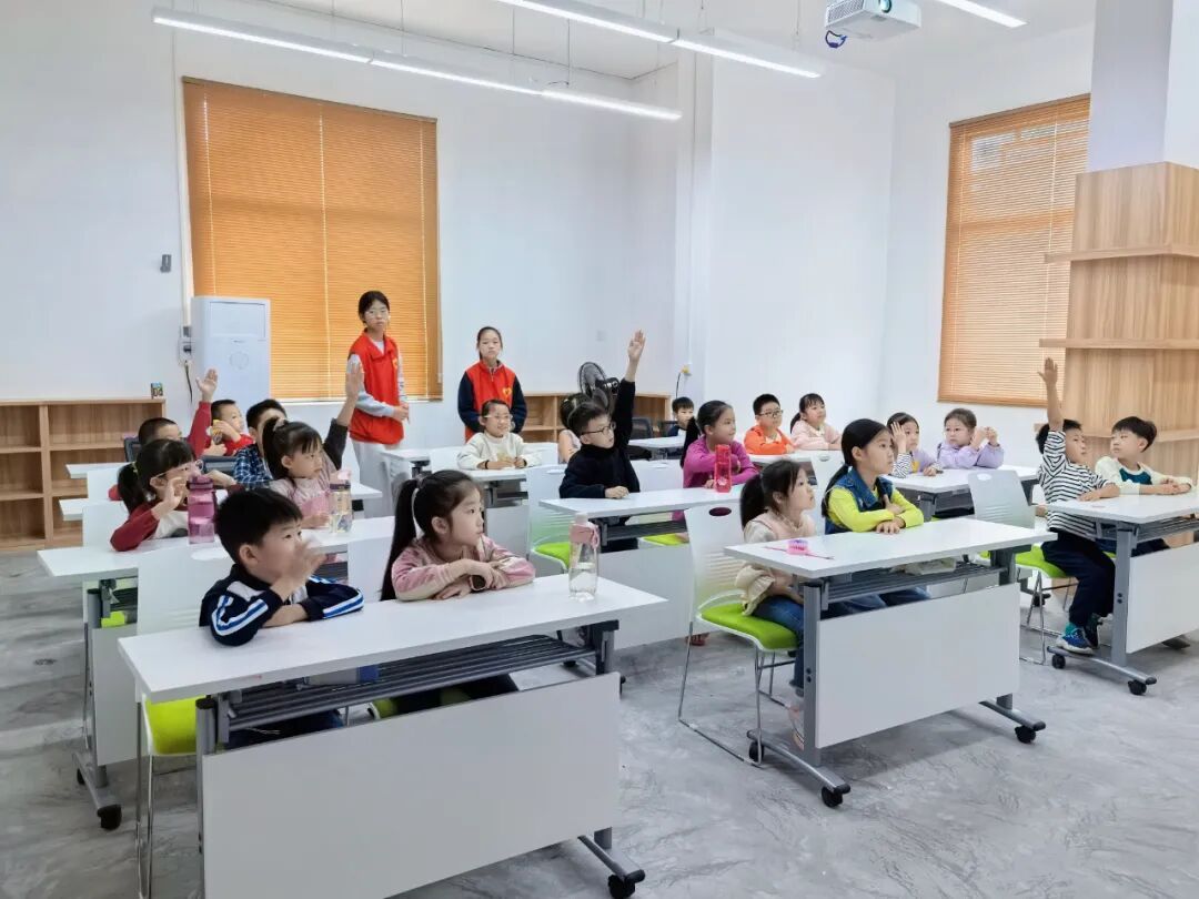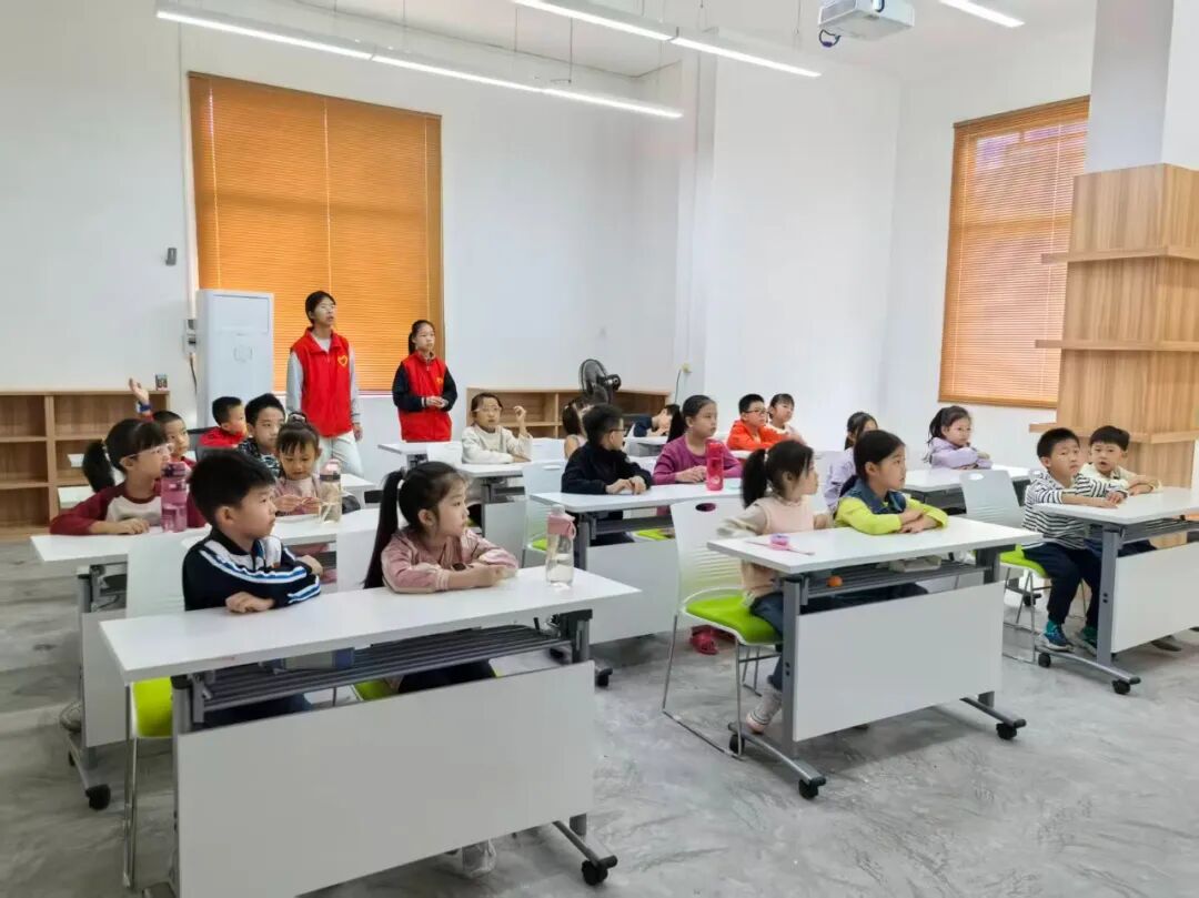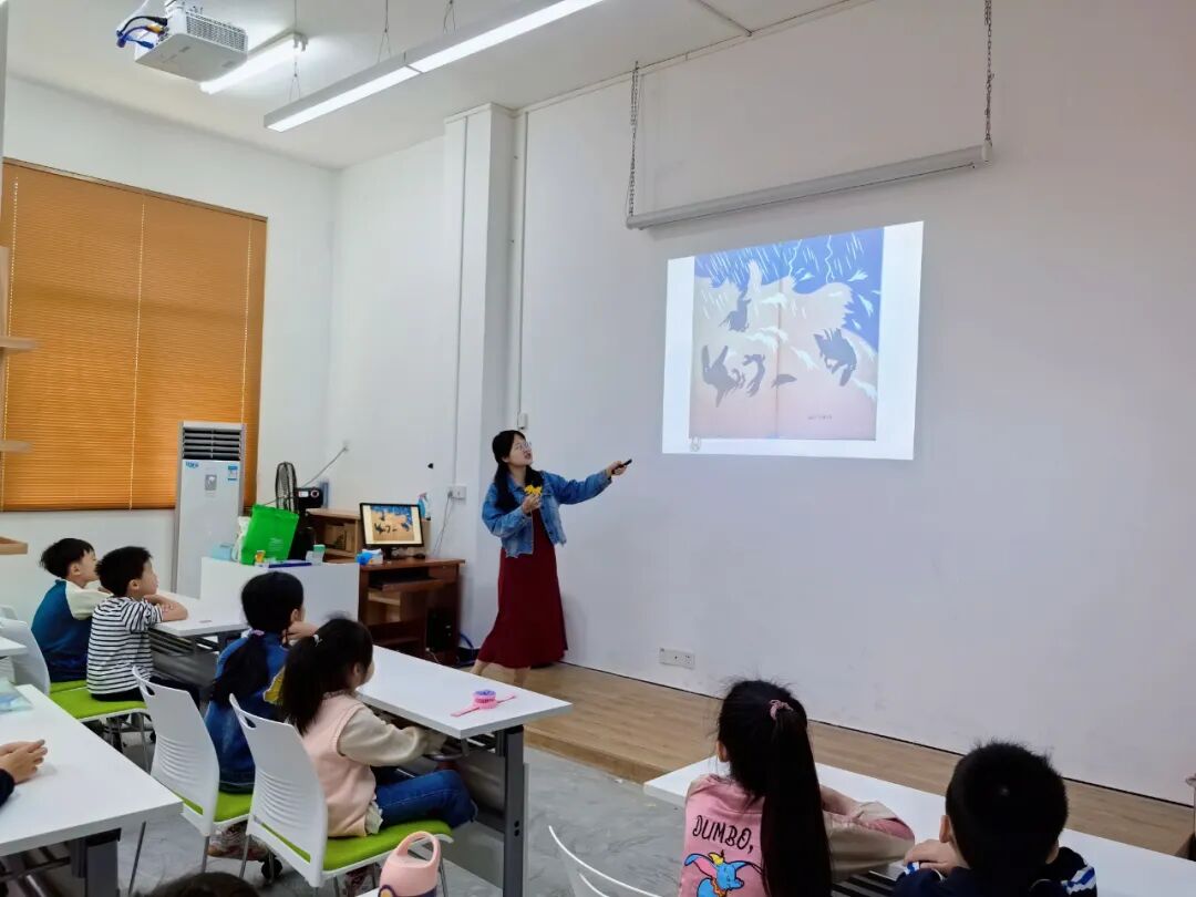 绘本讲述环节,小莹老师讲解了绘本中咔嚓咔嚓爷爷用剪纸艺术导演出一场小慈母龙找妈妈的恐龙剧场这一惊险又温馨的故事,引导小朋友们通过观察书中恐龙的特征,如颜色、形状,区分不同类型的恐龙、绘本中画面色彩的变化,一起感受这一出精彩的戏中戏。