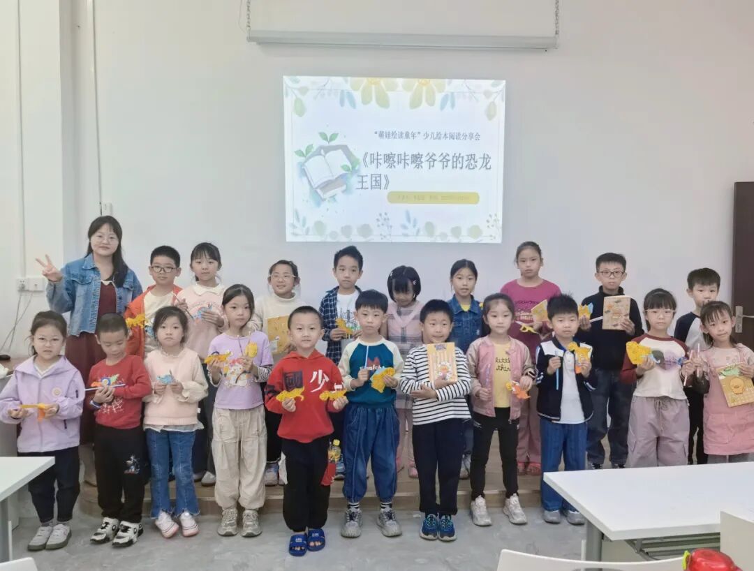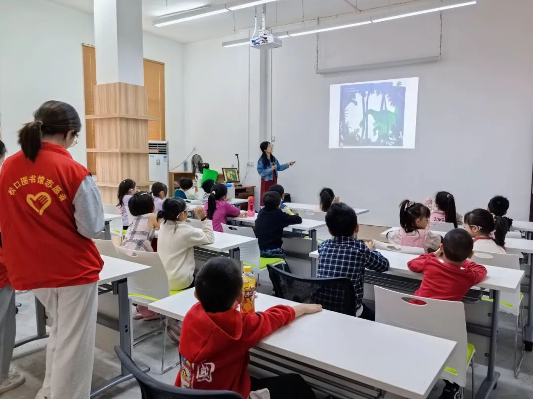 2025年10月25日上午,松口图书馆在多功能室开展“萌娃绘读童年”少儿绘本阅读分享会之《咔嚓咔嚓爷爷的恐龙王国》。